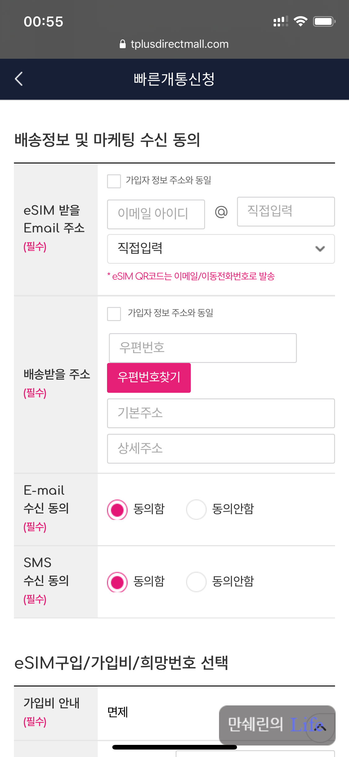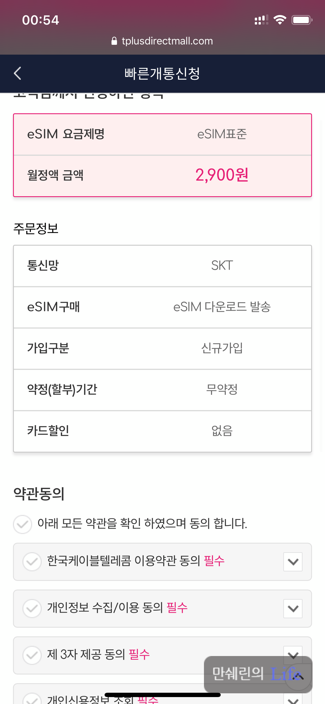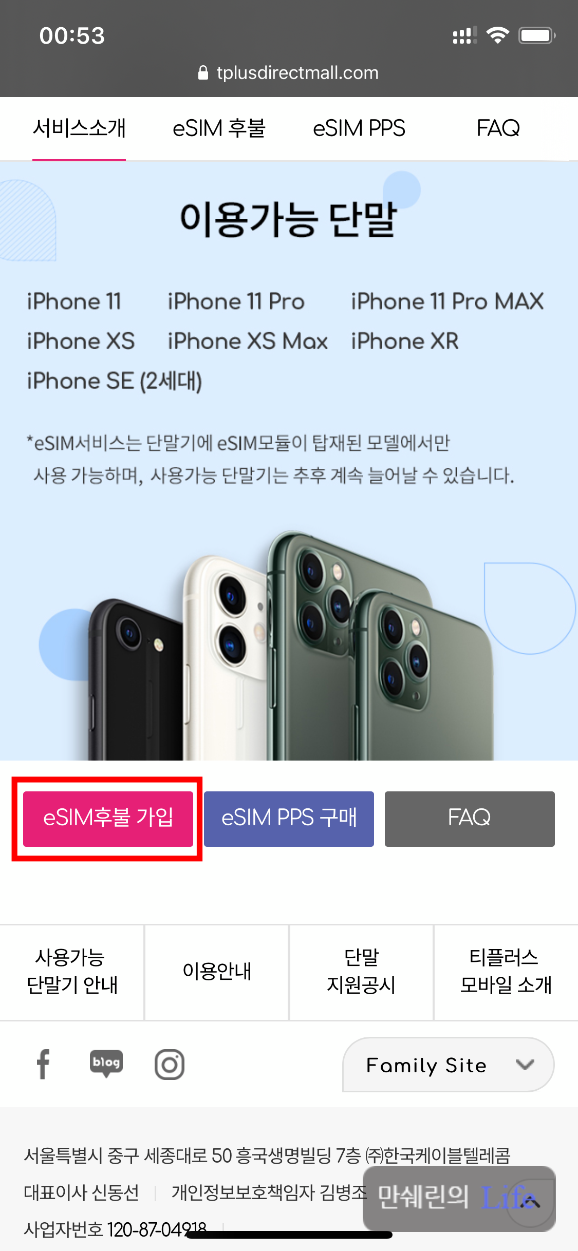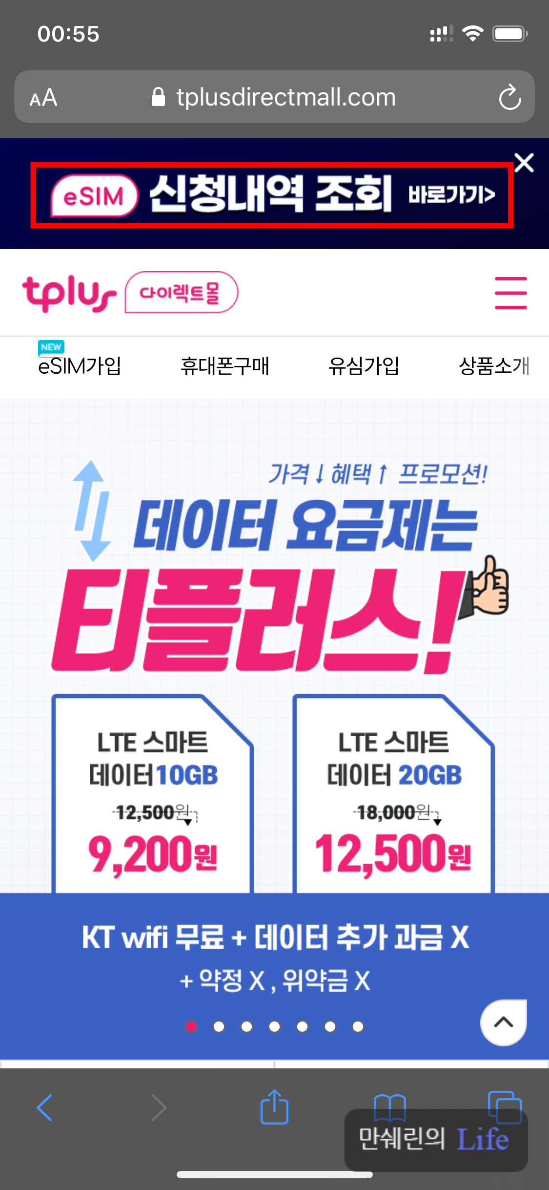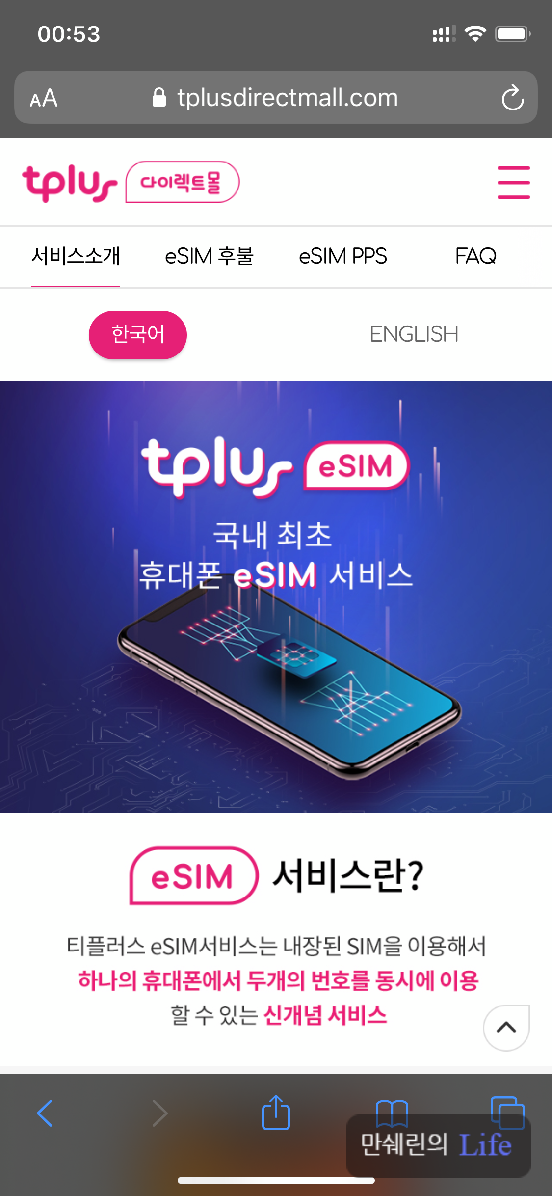 그래도 최근에 티플러스에서 eSIM개통이 가능하다고 하여 시험삼아 가입을 해보았습니다.