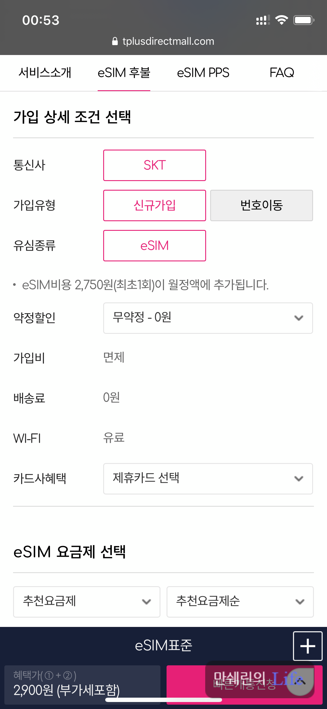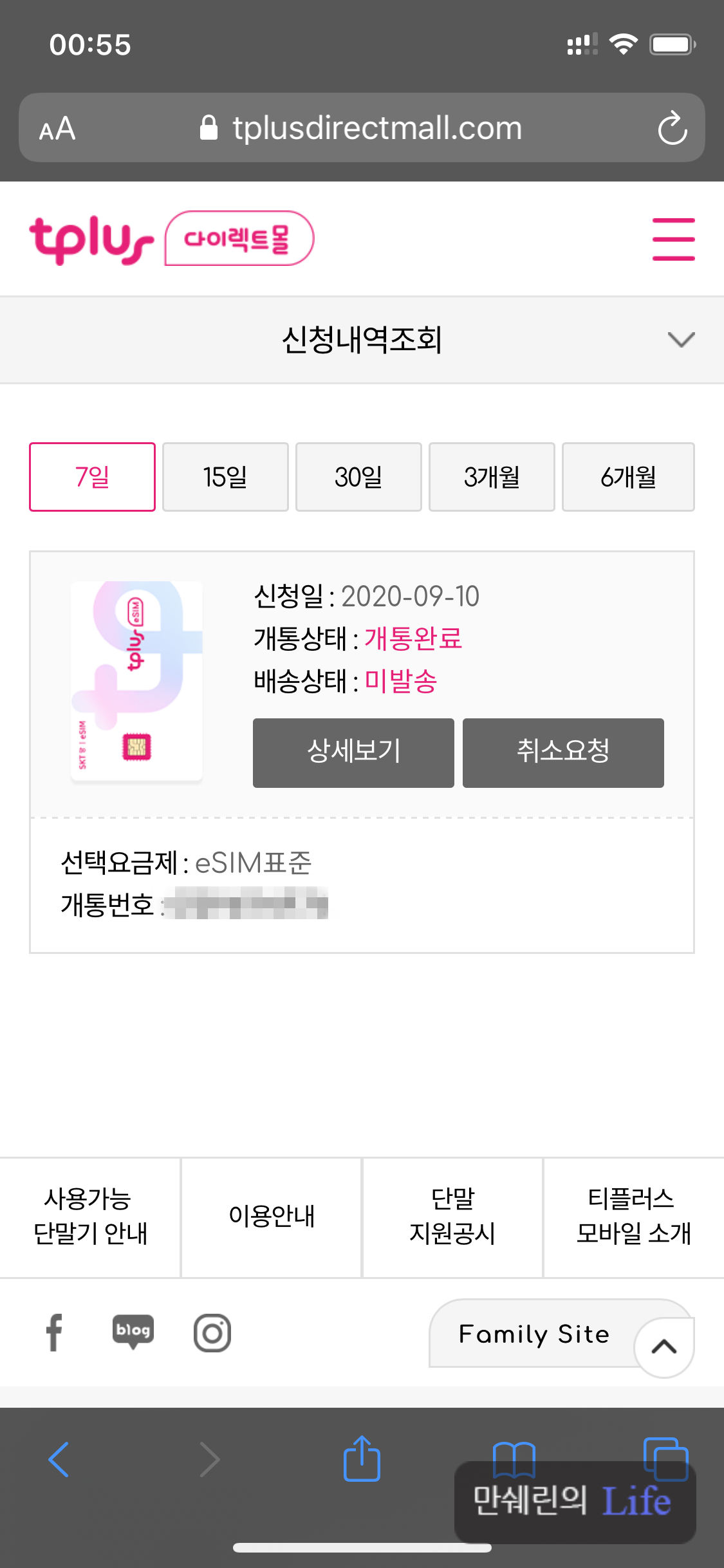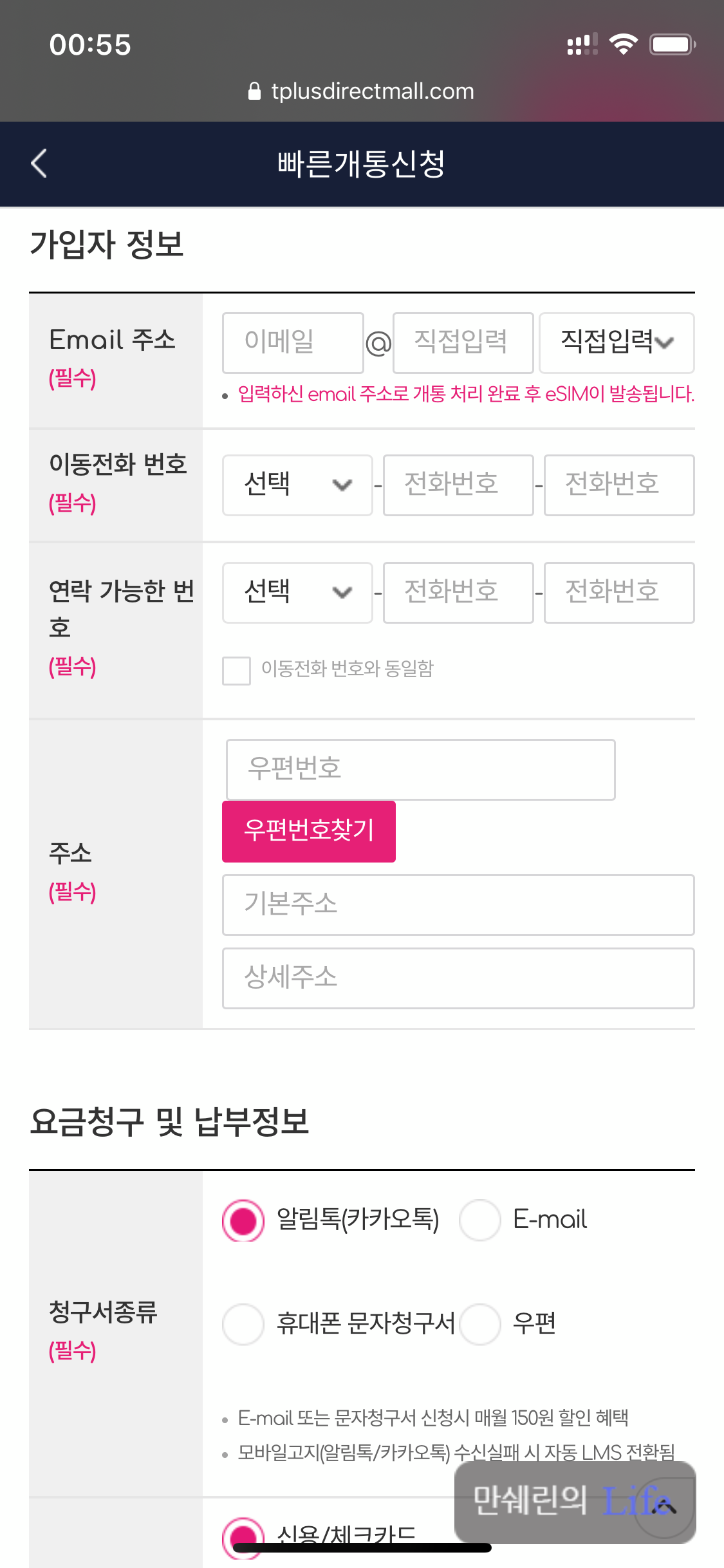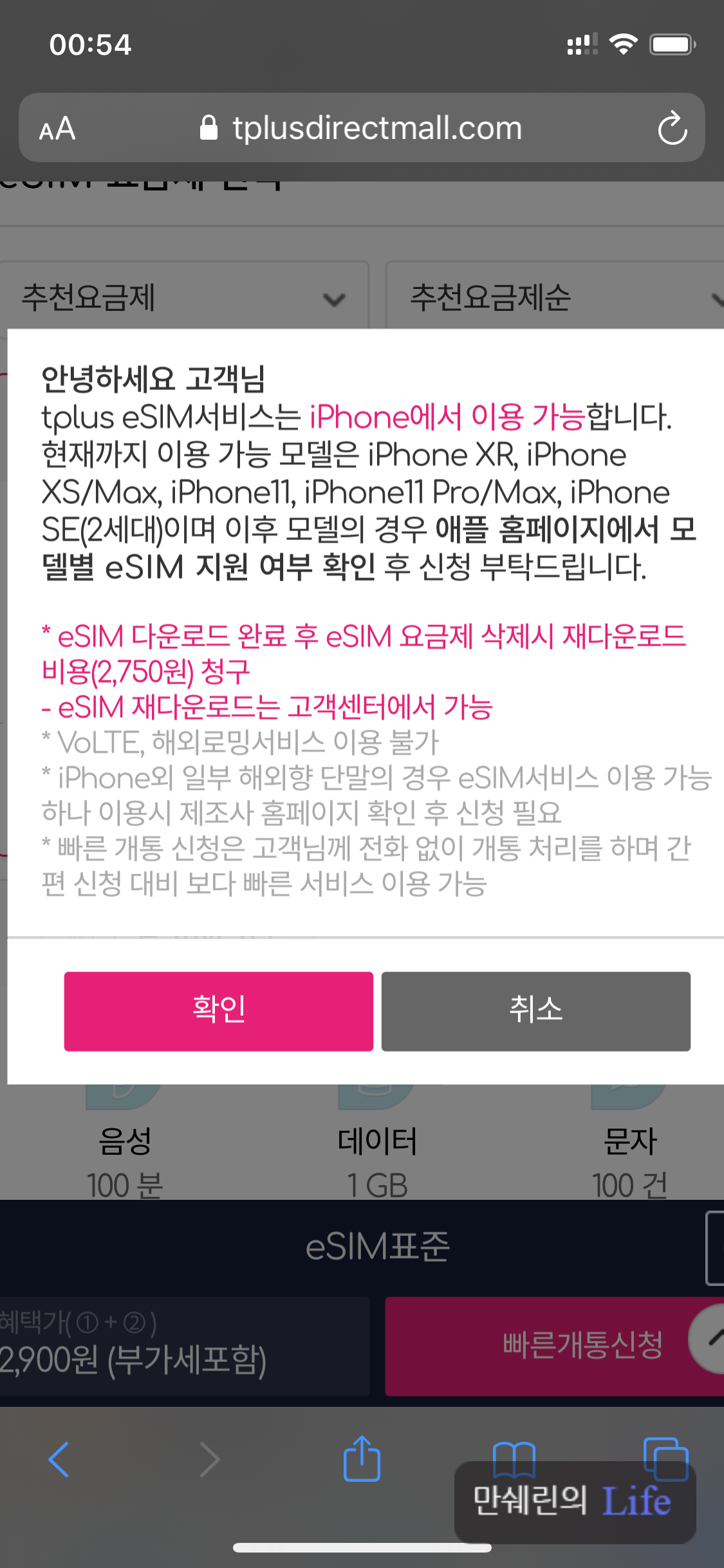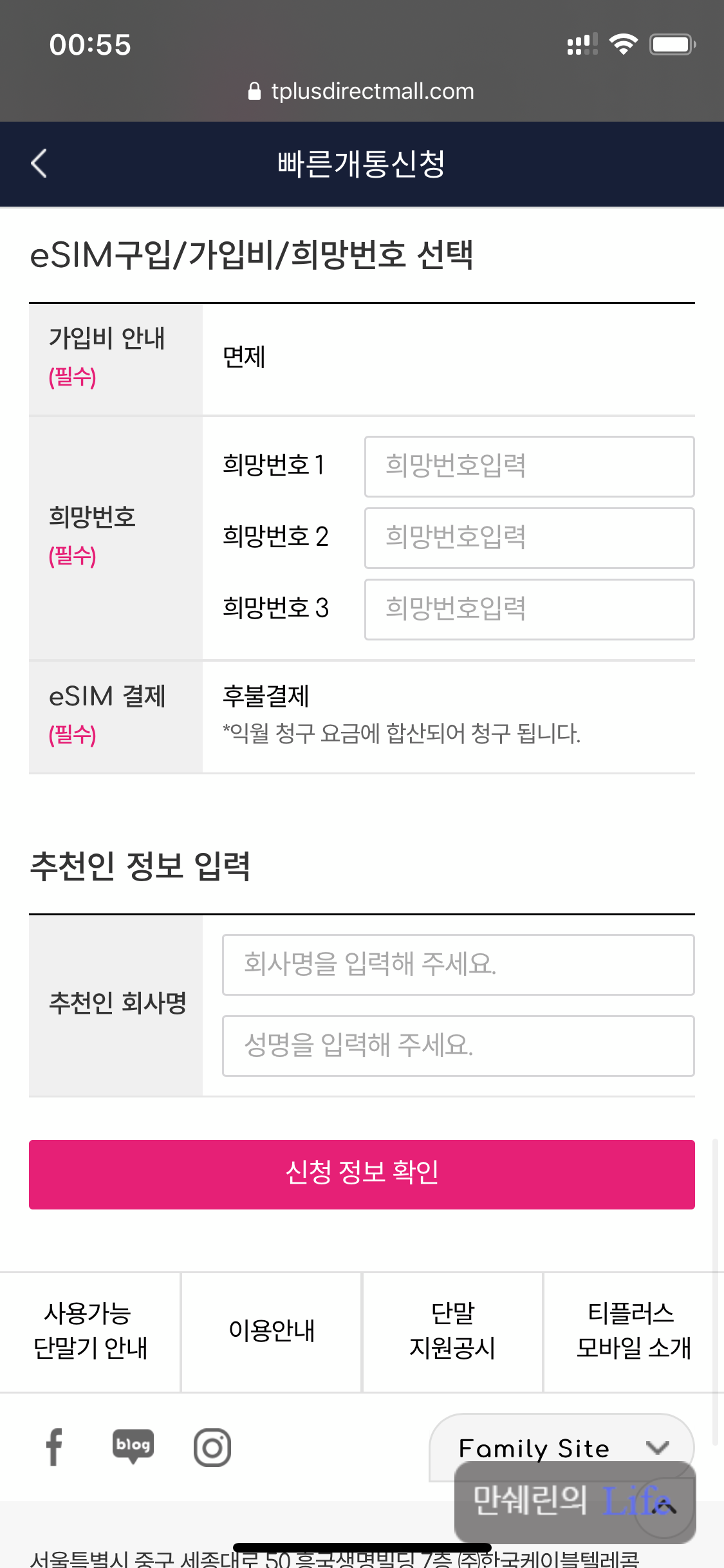 그래도 최근에 티플러스에서 eSIM개통이 가능하다고 하여 시험삼아 가입을 해보았습니다.