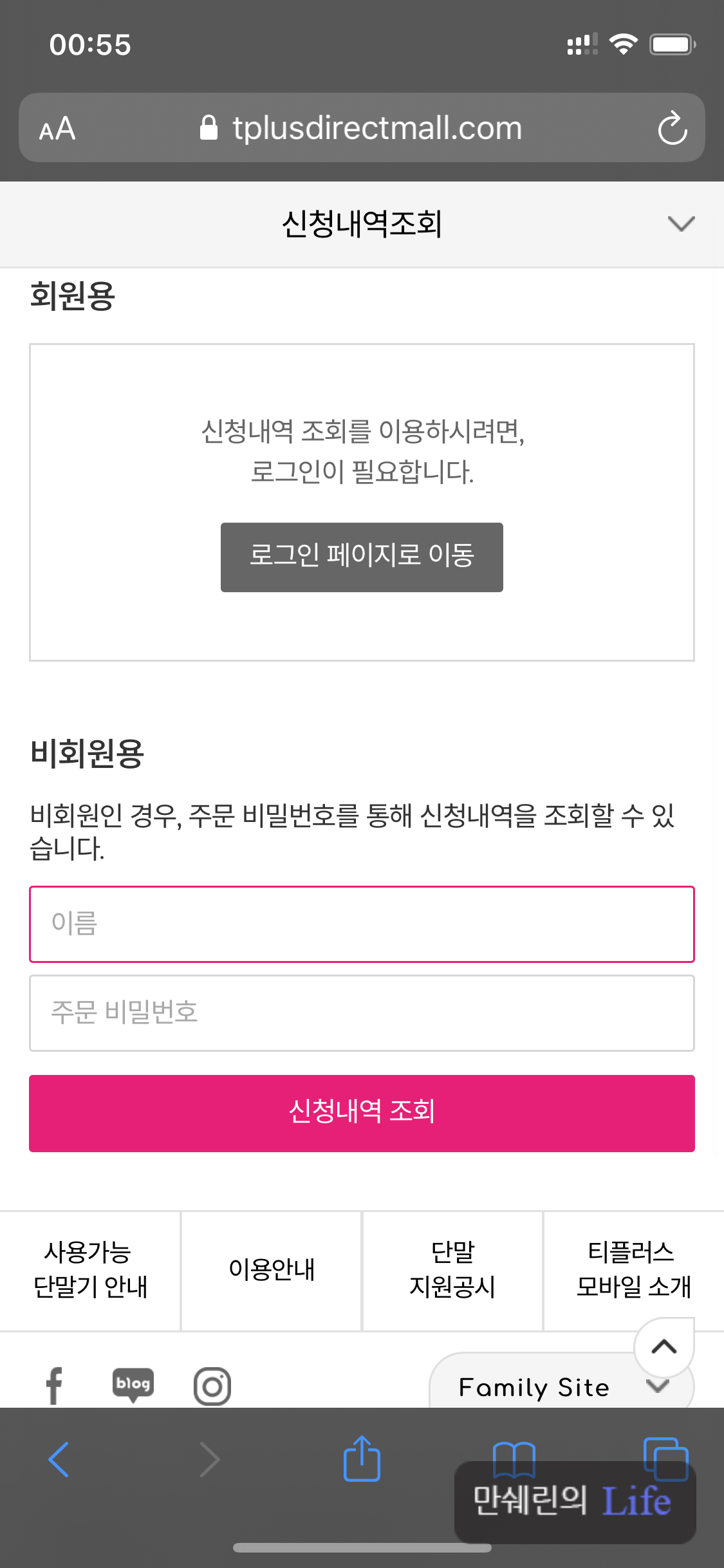 사파리로 티플러스 홈페이지를 검색하여 접속을 하였습니다.