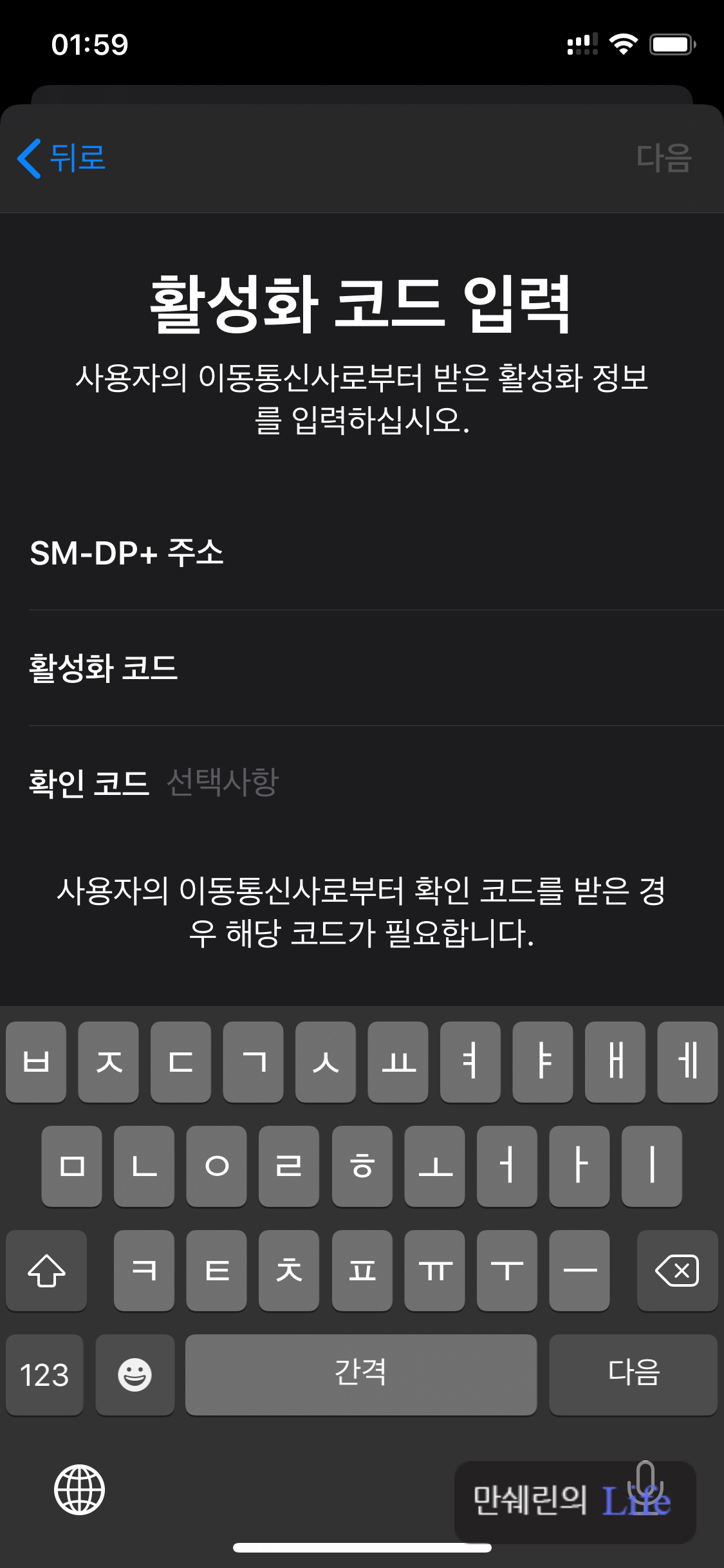 여기에 입력해주고 다음을 해주시면 eSIM이 개통이 됩니다.
