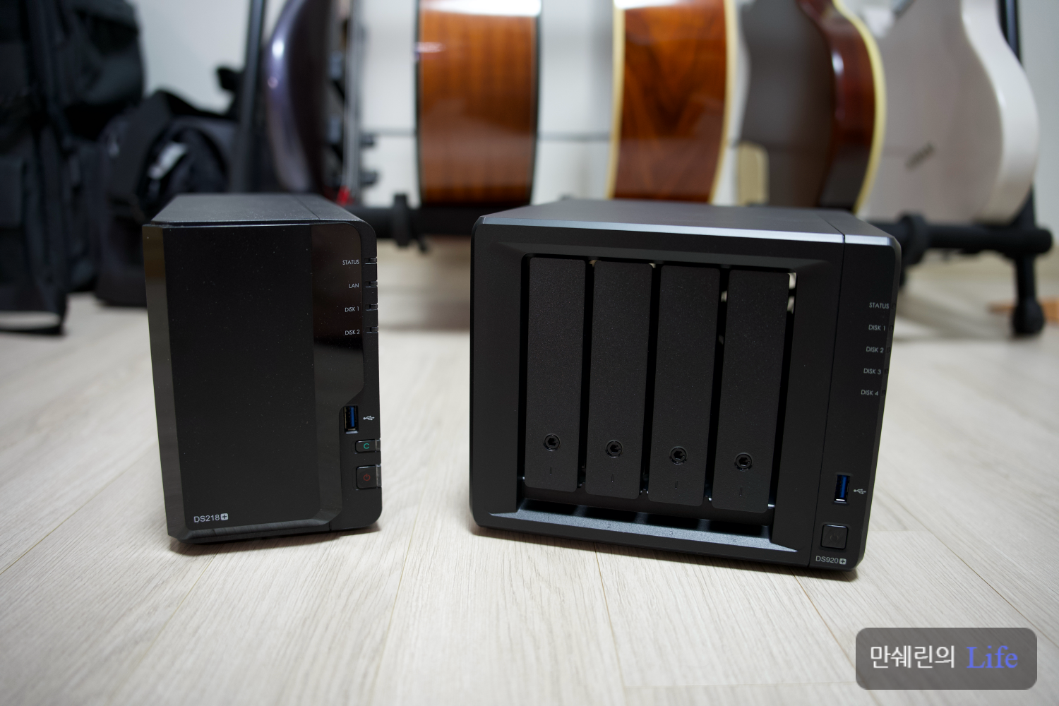 DS218+도 성능적인 면에선 부족함이 없었지만 역시 하드베이가 2개밖에 없어서 용량 관리하기가 너무 힘들었습니다.