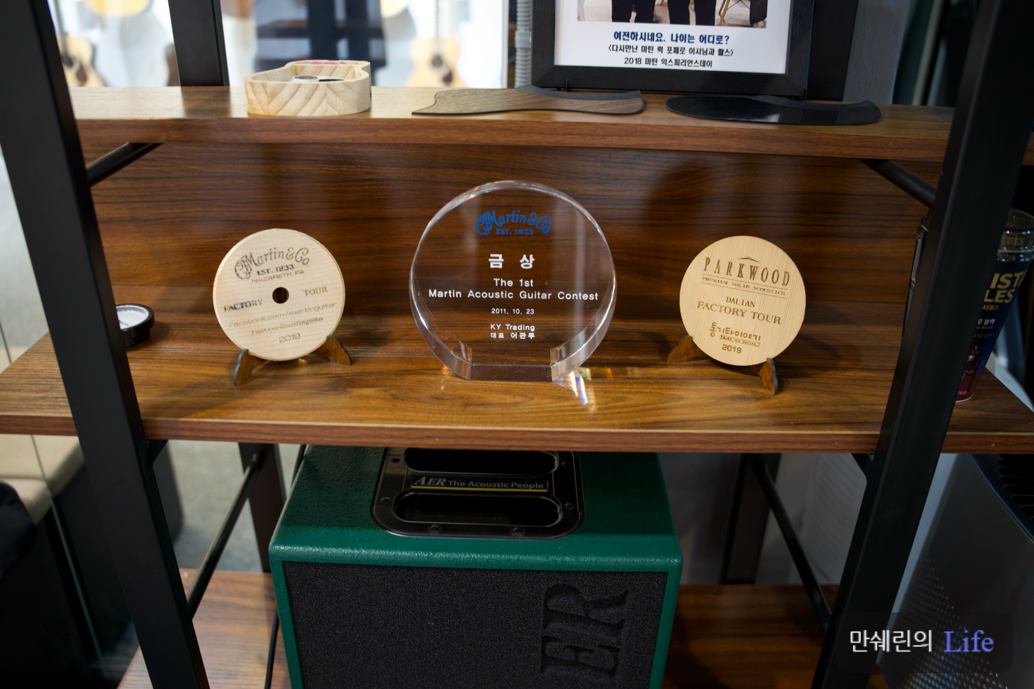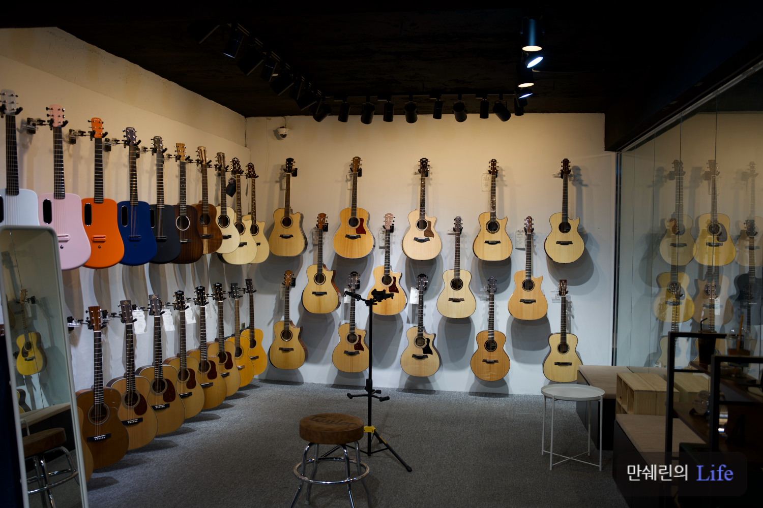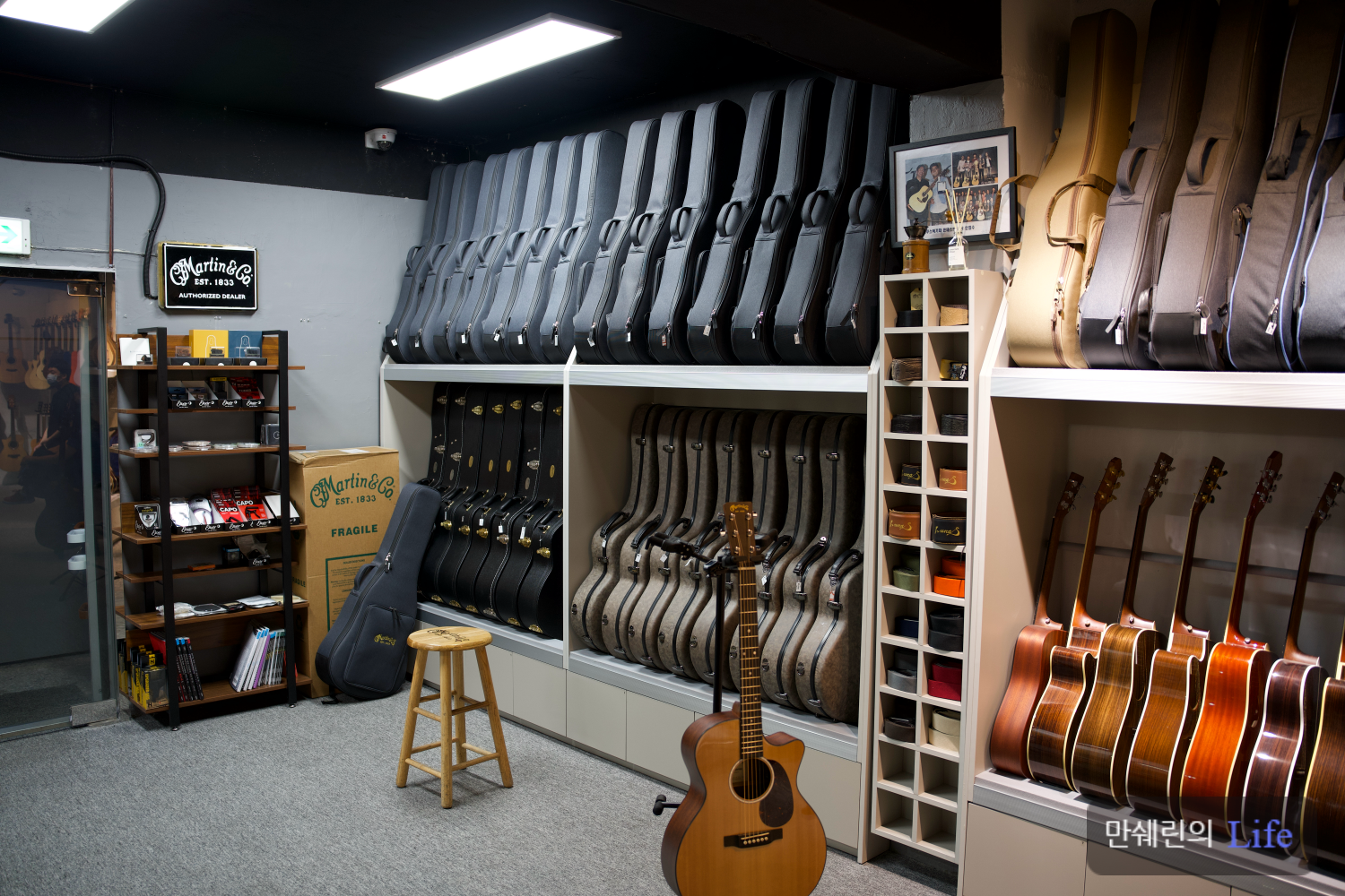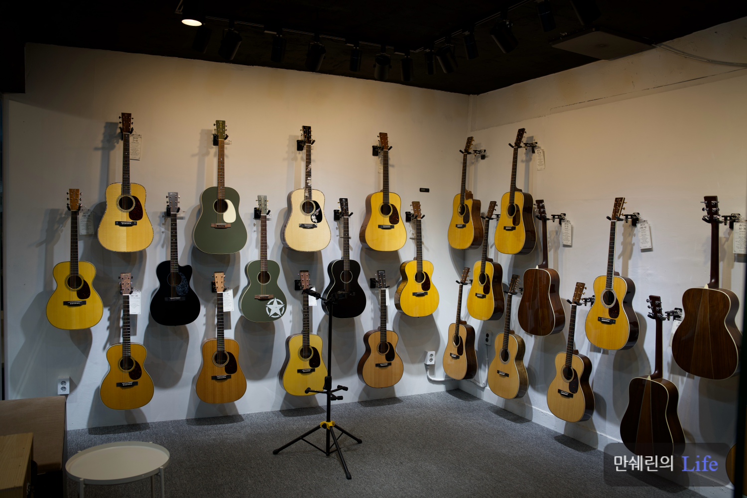 매장 오른쪽에 유리방 안쪽엔 마틴 기타들이 전시 되어 있습니다.