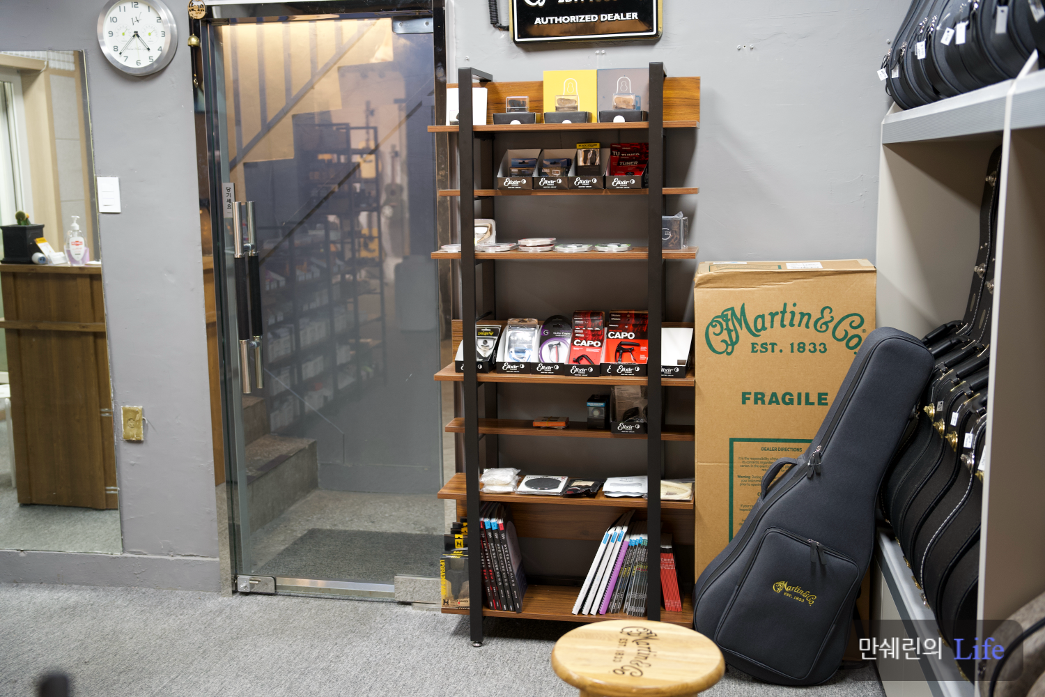 여기서 기타줄과 기타 관리용품 등을 구매할 수 있습니다.