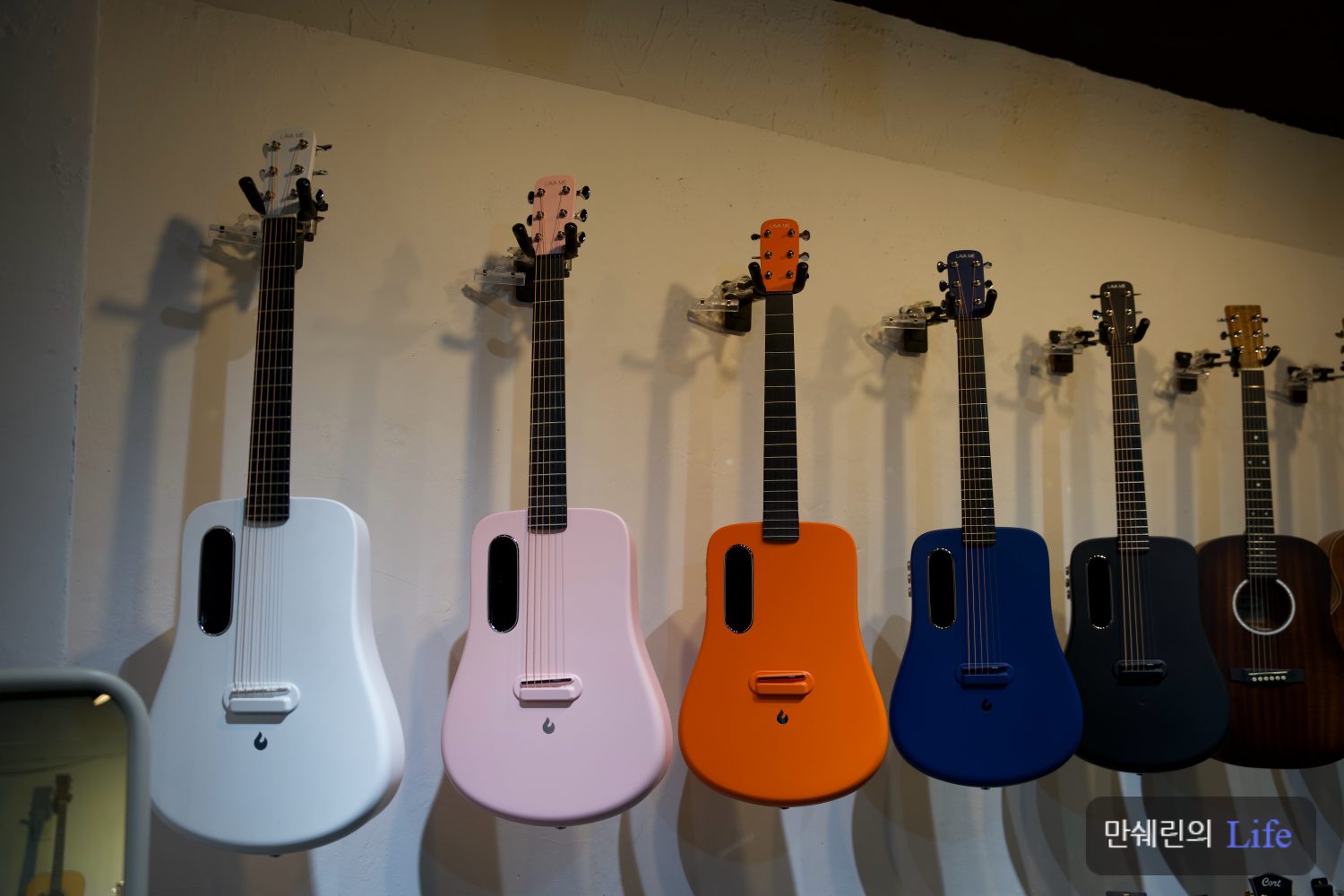이쪽 기타들을 대부분 고가의 제품이라 꼭 앞치마를 입고 시연을 하시기 바랍니다!