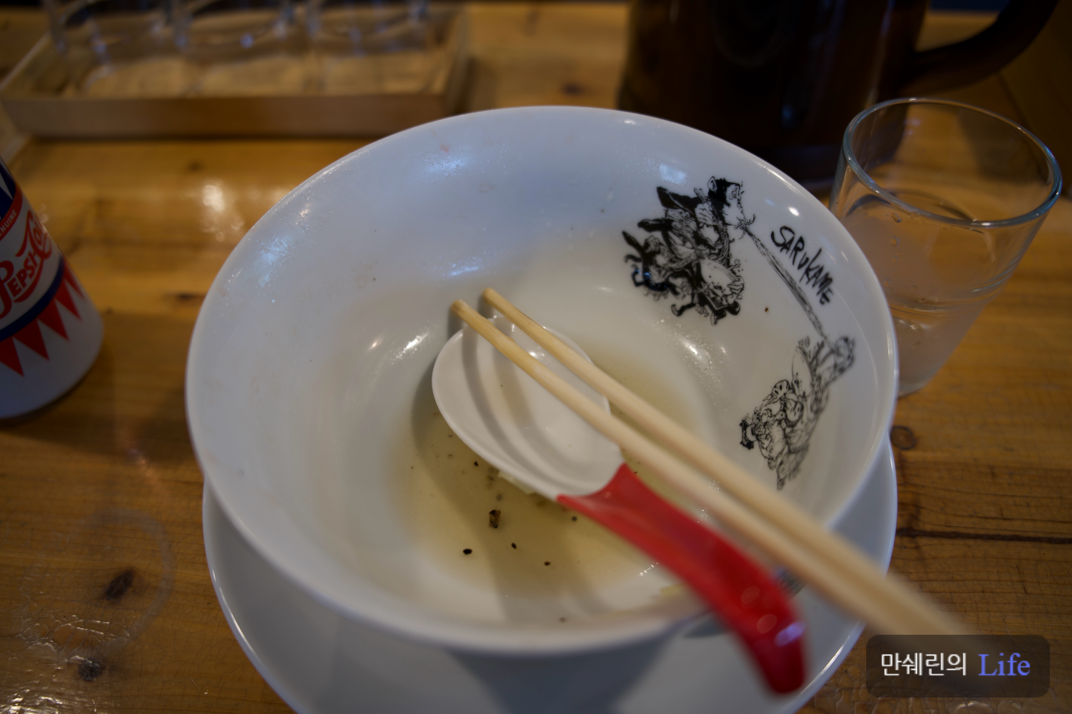 사루 라멘은 닭고기를 베이스로 한 국물의 라멘이고,