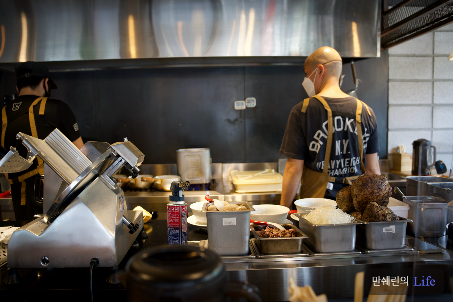 두분의 남자 사장님이 분업이 되어 왼쪽에서는 국물을 내고 오른쪽에서는 면을 삶았네요.