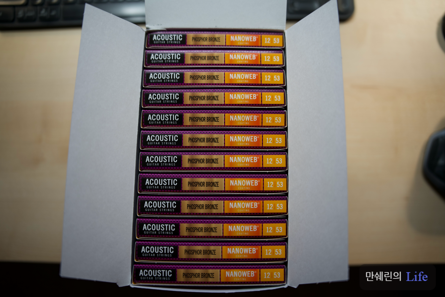 제가 선택한 모델은 엘릭서 사의 나노웹 포스포 브론즈고 줄의 두께는 라이트 게이지 입니다.