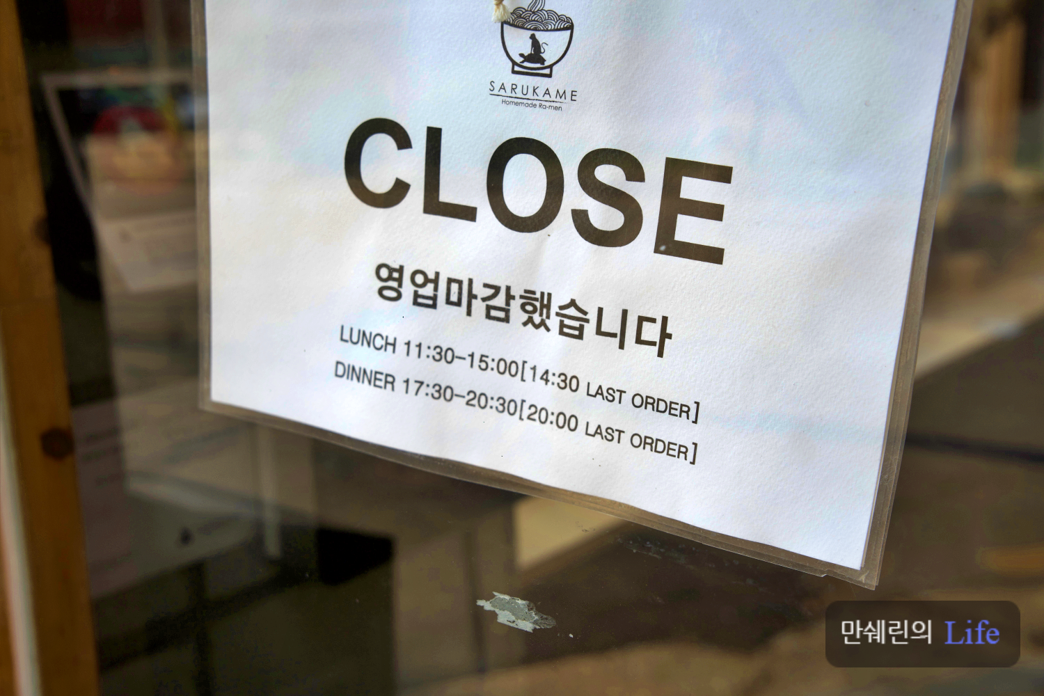 예전에는 위에 보이는 고리에 원숭이 인형을 걸어서 오픈인지 아닌지를 표시 했었는데 이번에는 안걸어 두더군요.
