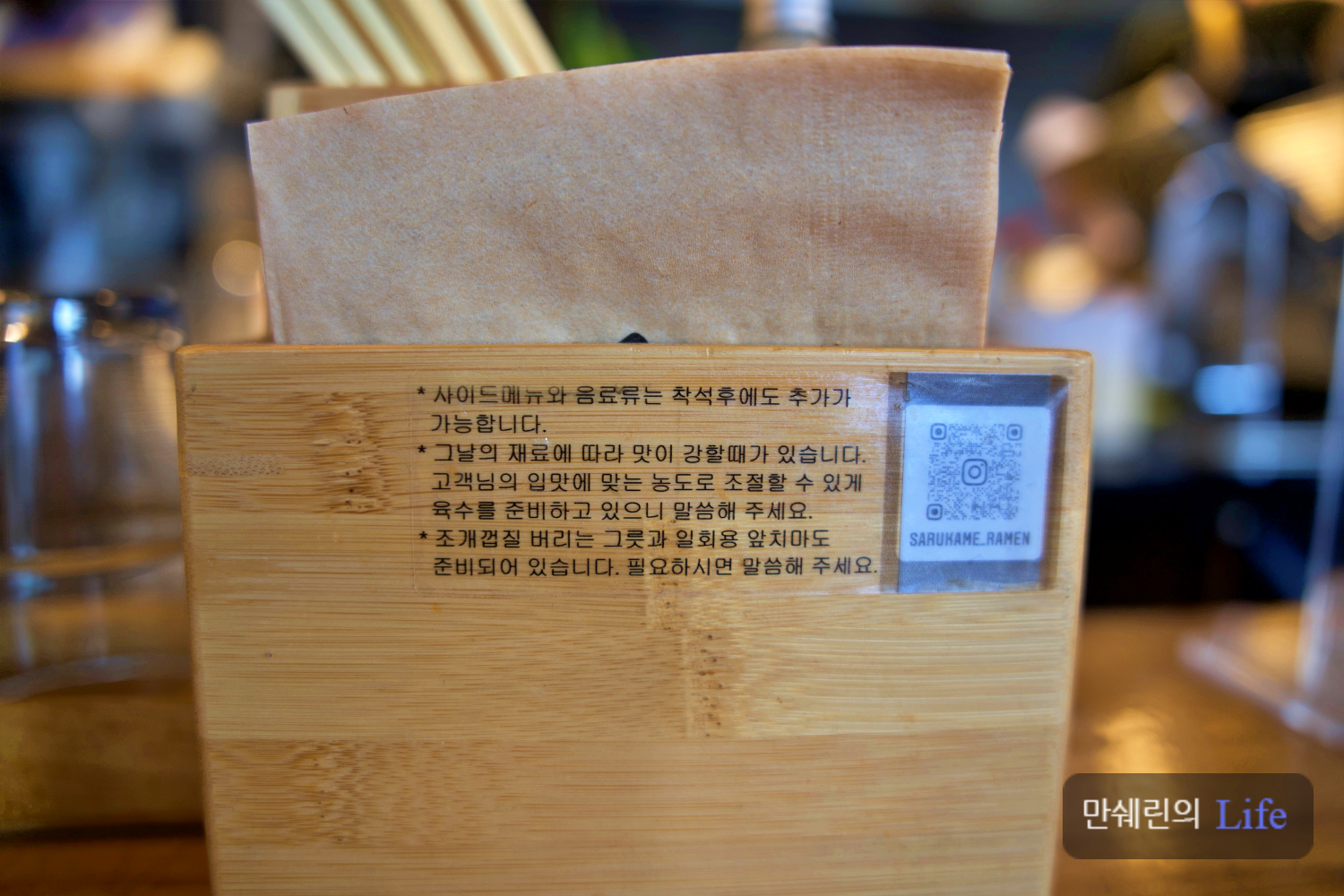 냅킨 꽂이에 안내문이 있으니 확인하시고 입맛에 맞게 더 주문할 수 있습니다.