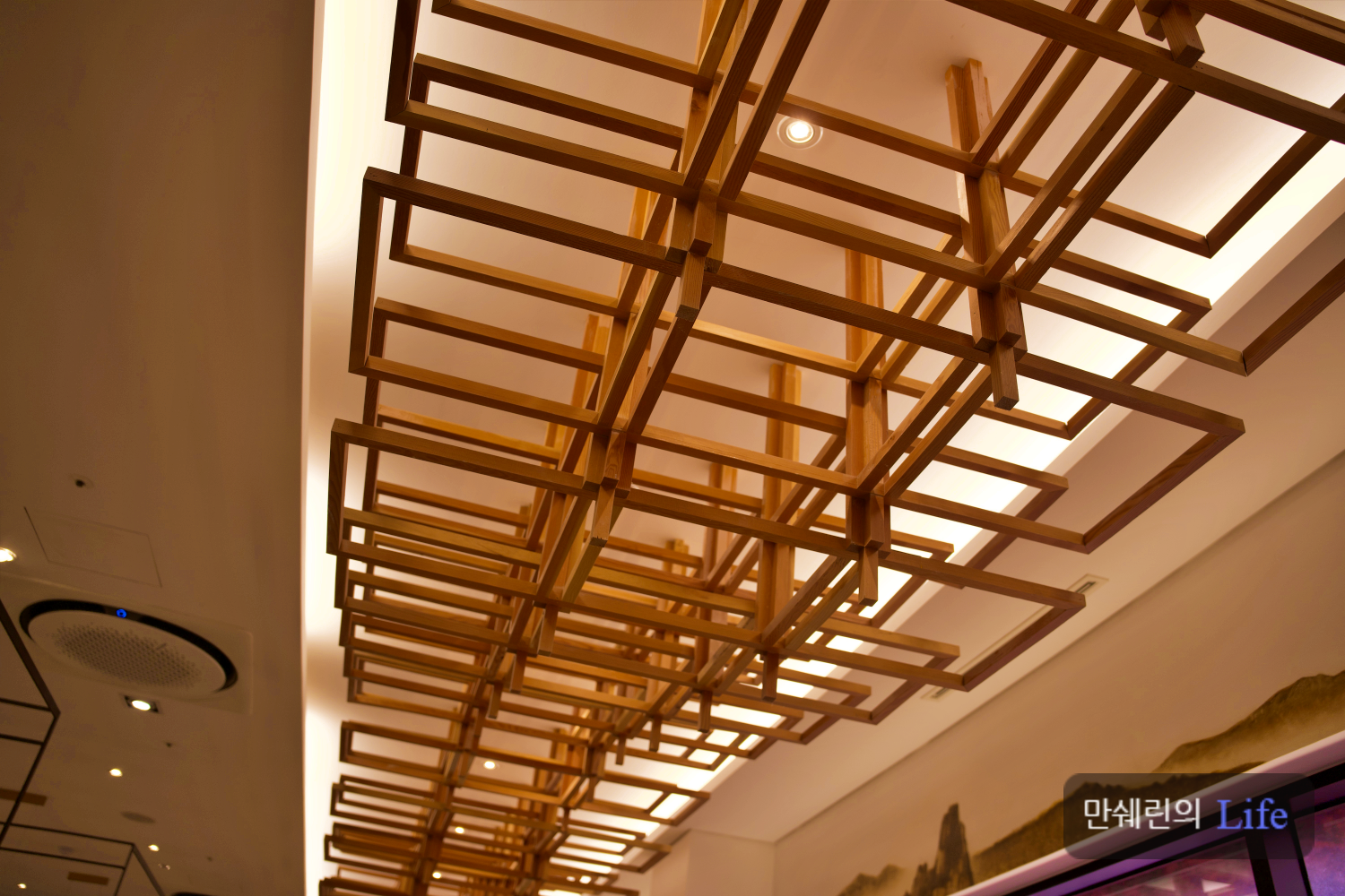천장에 나무 문양을 형상화 한 장식품이 한국적인 분위기를 더해줍니다.