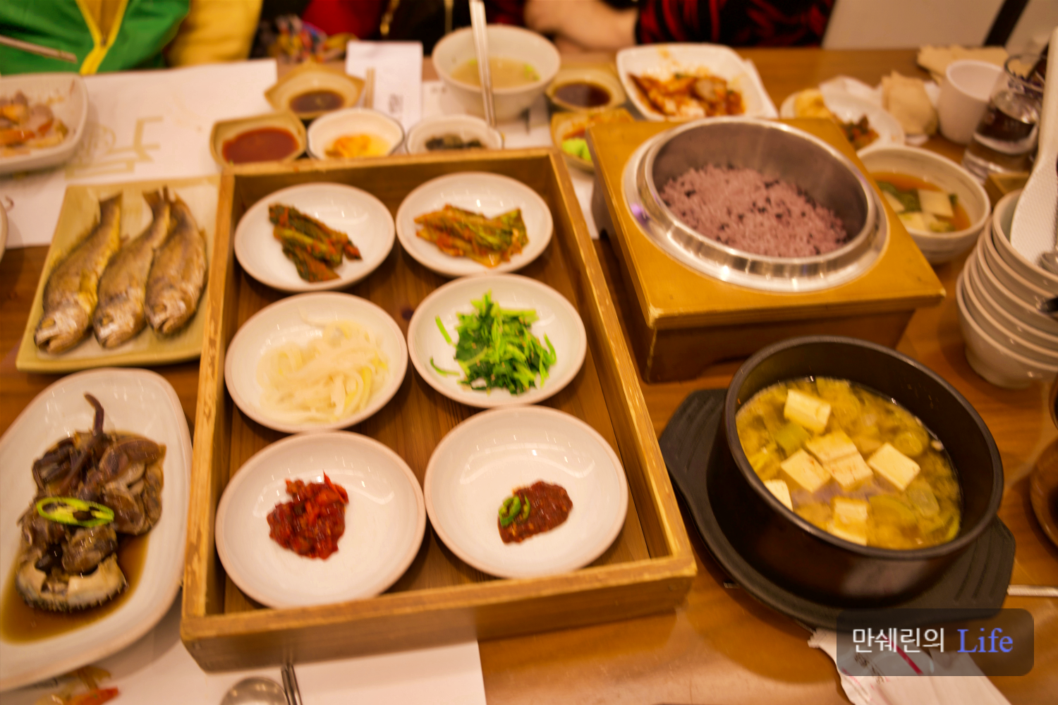 솥밥과 된장국, 나물과 조기튀김, 간장게장 까지 나와서 식사의 마무리를 해주는 느낌이었습니다.