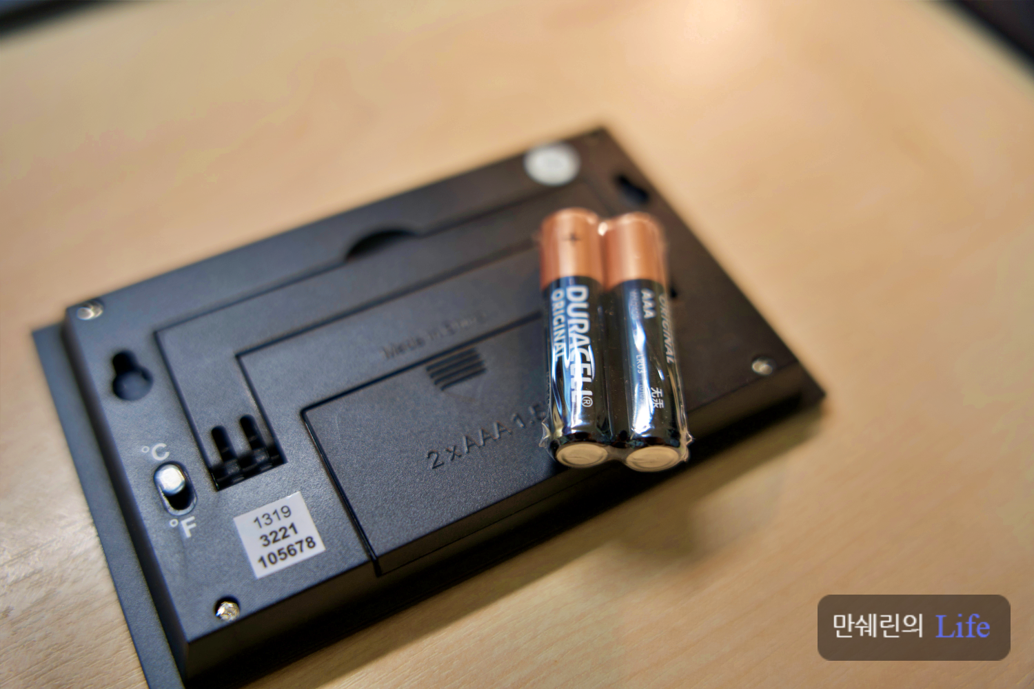 뒷면에는 스탠드와 배터리 투입구, 화씨와 섭씨의 변환 스위치가 있습니다.