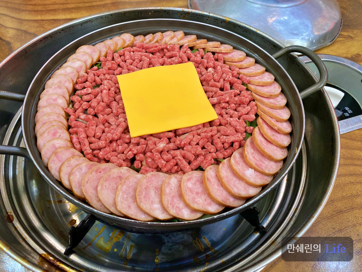 소세지와 햄이 가득하고 치즈가 한장 곱게 올려진 모습에 카메라를 안챙겨 온것을 후회했네요.