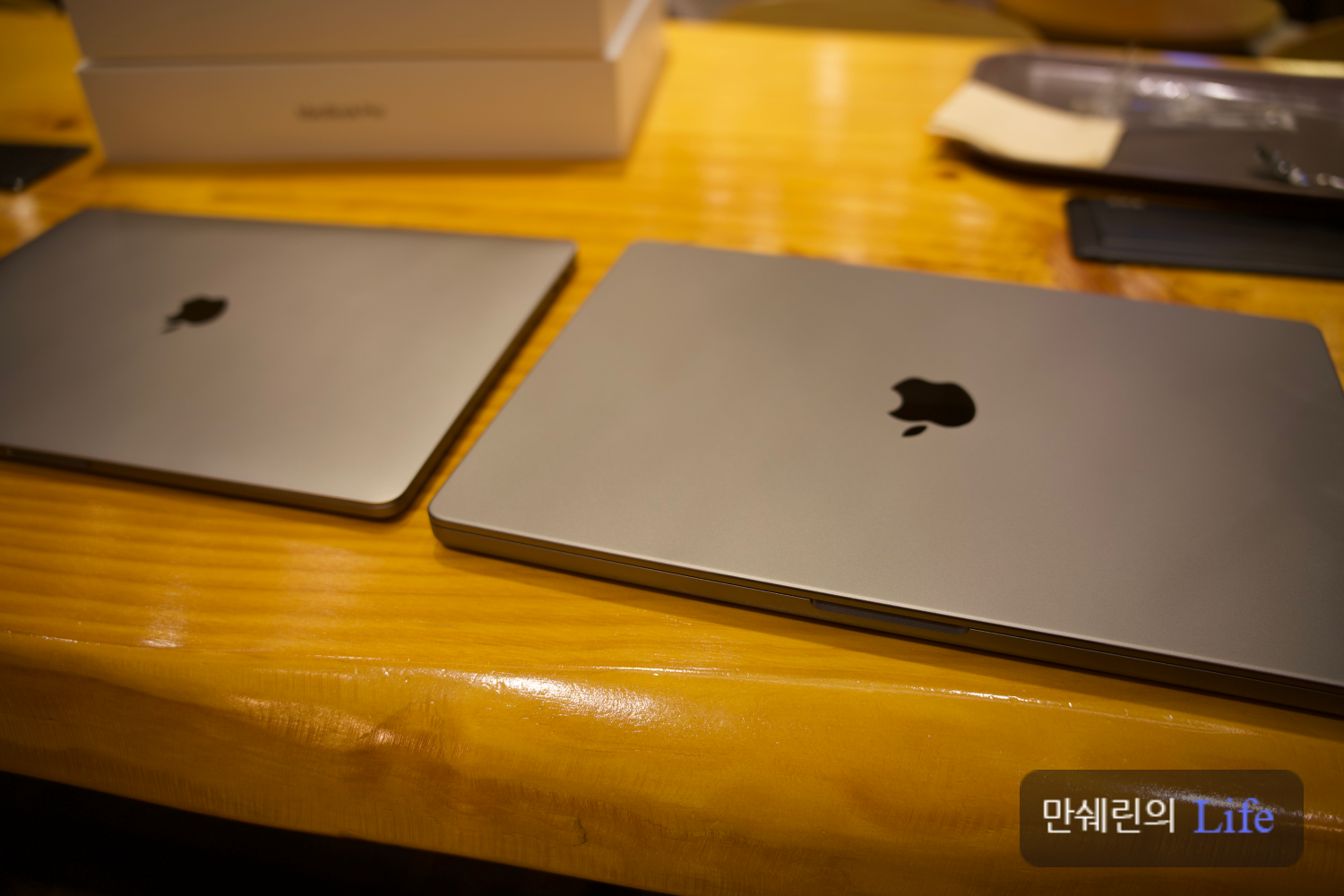 왼쪽이 기존에 쓰던 15인치 맥북프로고 오른쪽이 16인치 맥북프로 입니다.