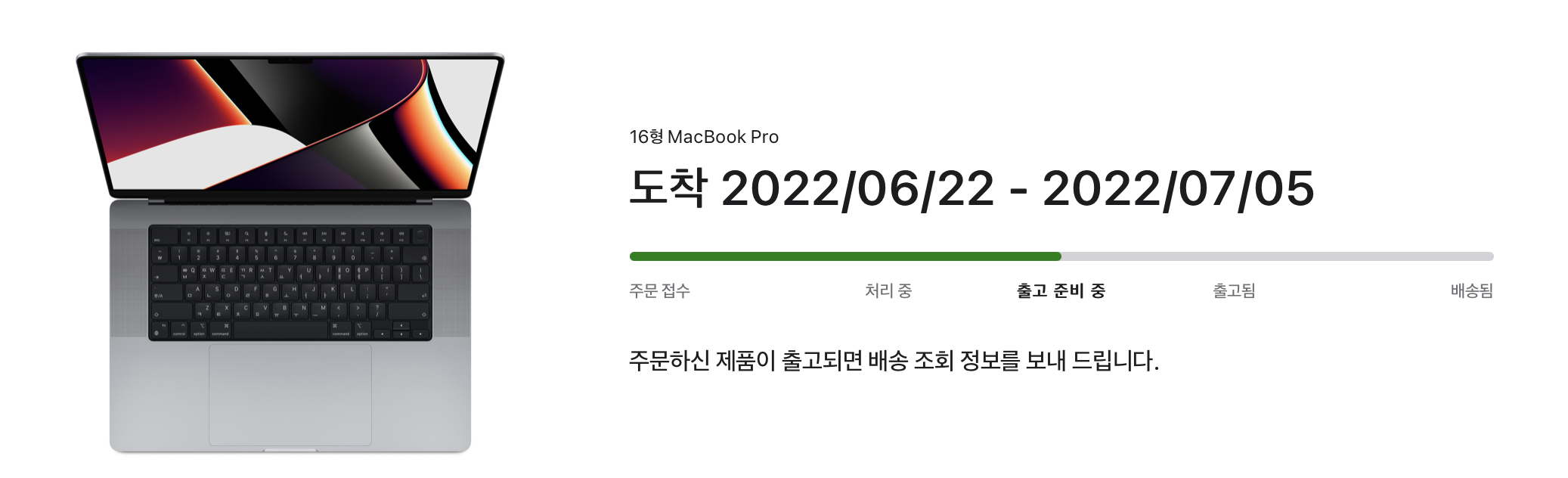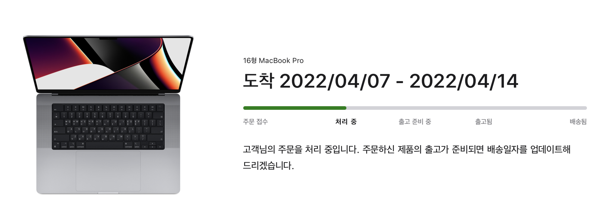 맥북프로를 최초로 주문한 날은 2022년 2월 21일 입니다.