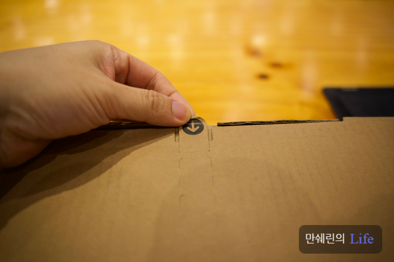 요즘 애플 제품은 포장을 손으로 뜯을 수 있게 이런 손잡이를 제공합니다.