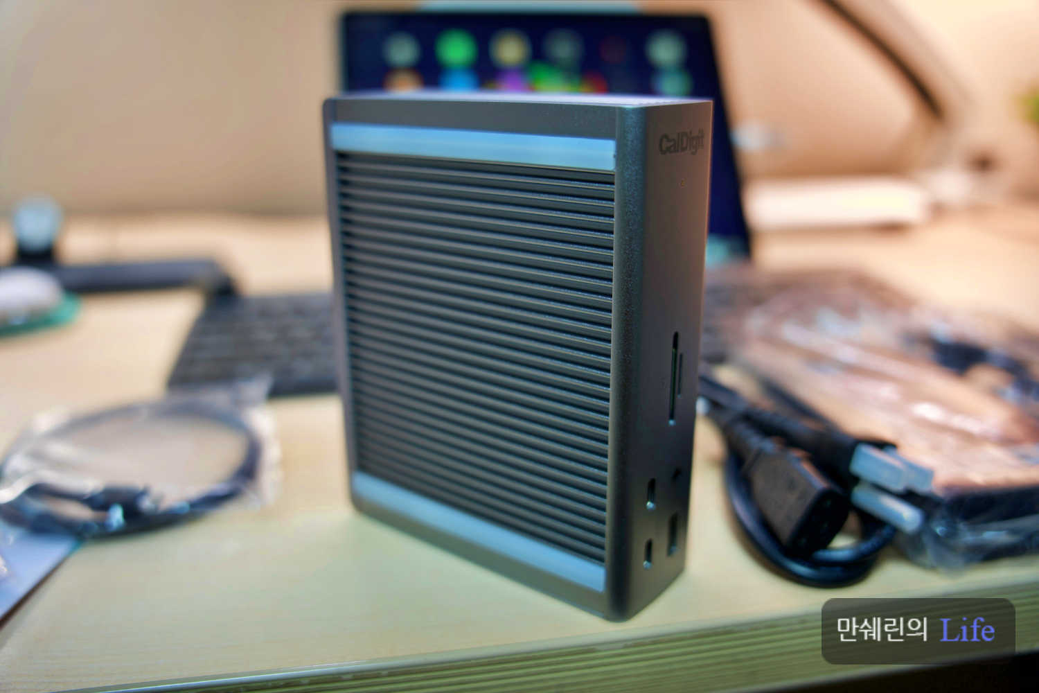 기기 상단에 CalDigit이라고 로고가 프린팅 되어 있습니다.