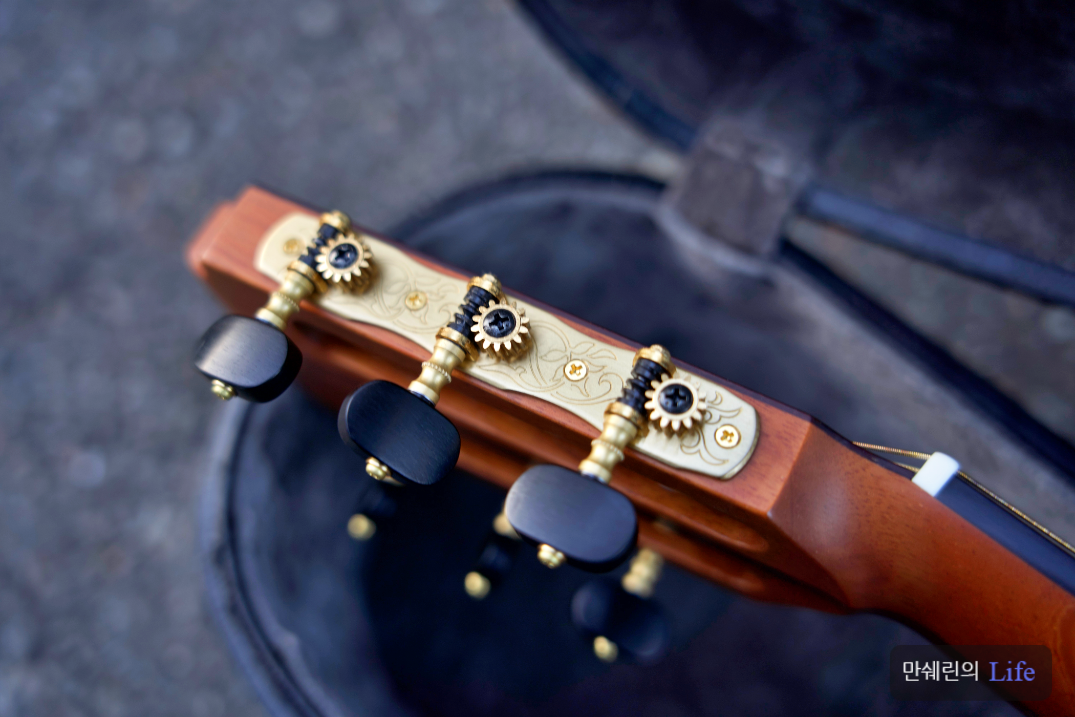 헤드머신은 Gotoh Classic Gold with ebony buttons가 적용 되어 있습니다.