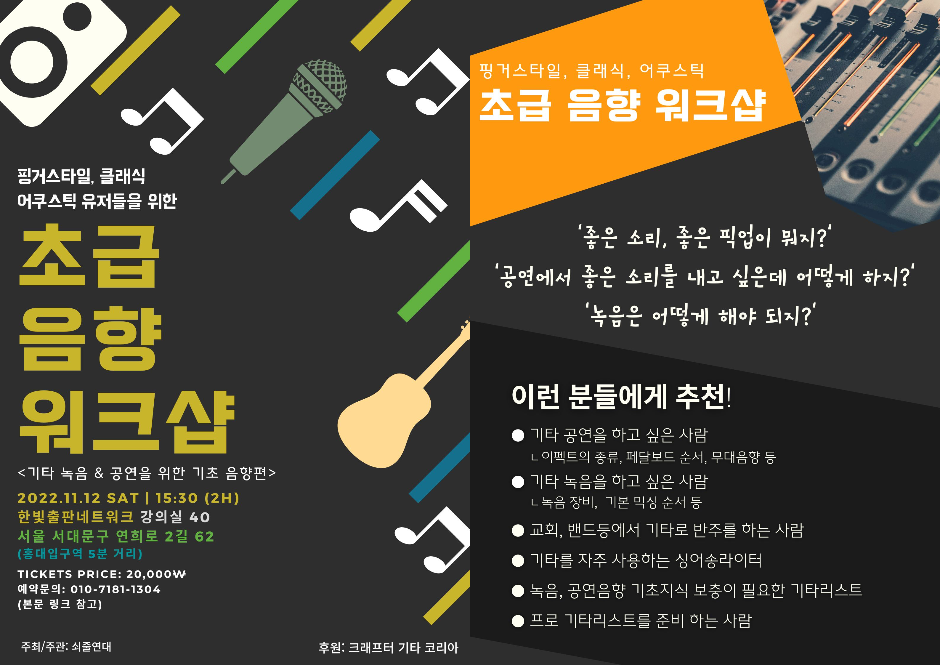 2022년 11월 12일 쇠줄연대 주최, 크래프터 후원으로 서울 연희동 한빛 빌딩에서 초급 음향 워크샵이 있었습니다.