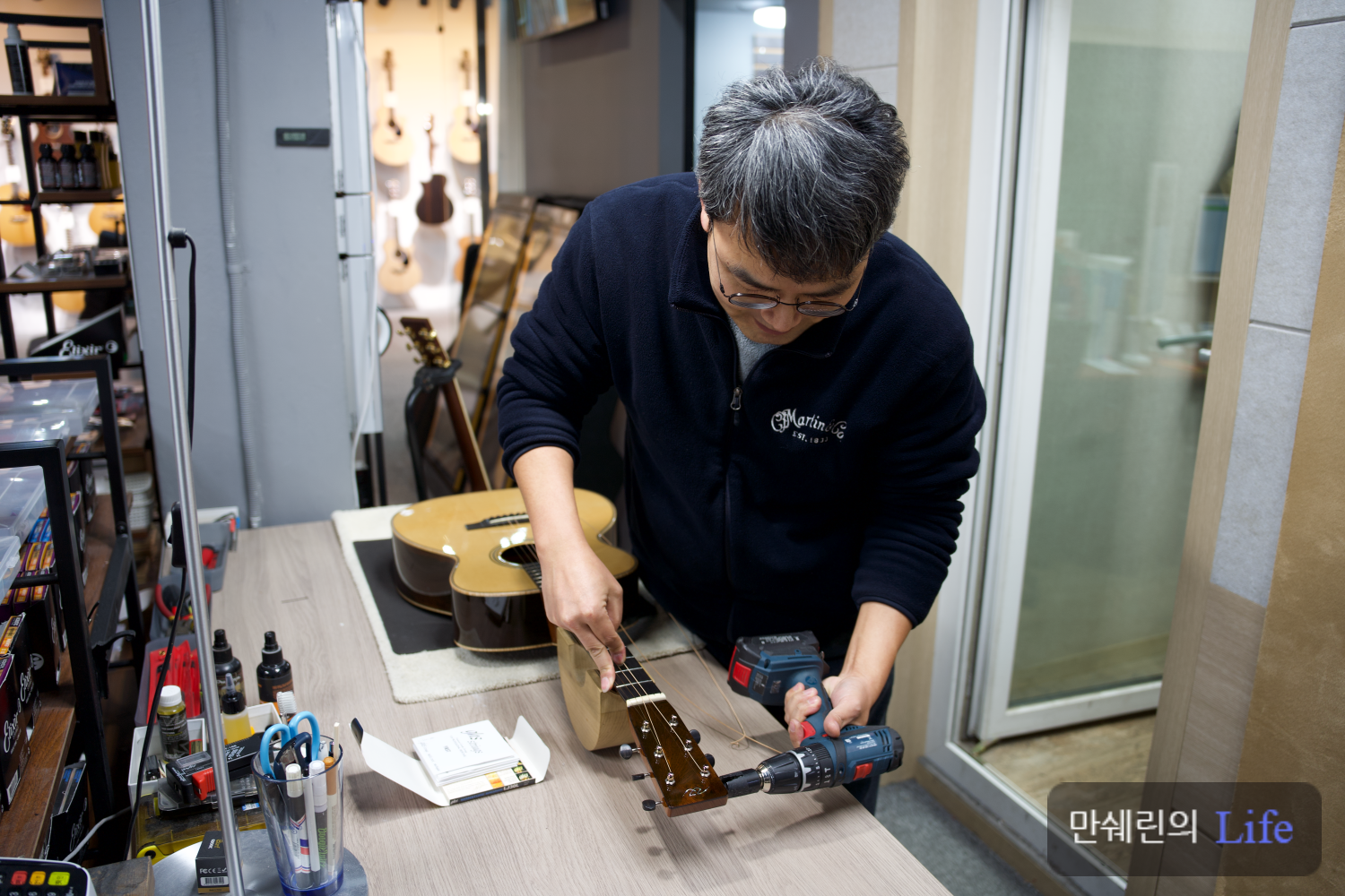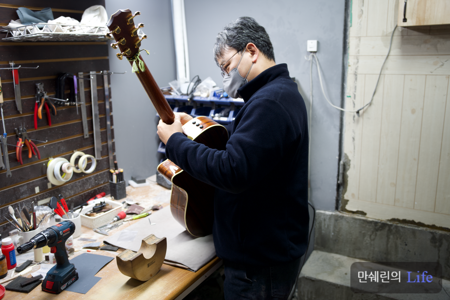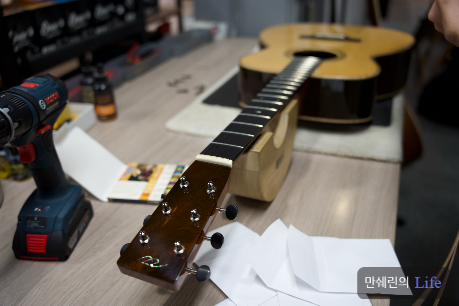 여기서 여러분의 기타를 셋팅 혹은 수리를 해주십니다!