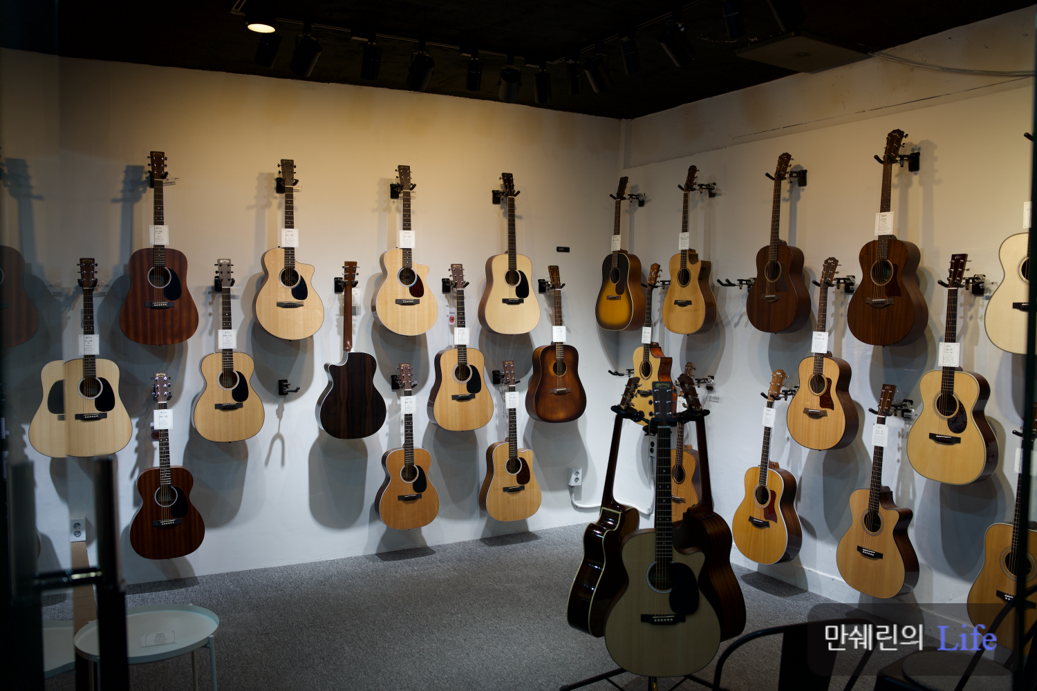 오른쪽에 있는 유리방에는 마틴과 테일러 등 약간 고가의 제품들이 준비 되어 있습니다.