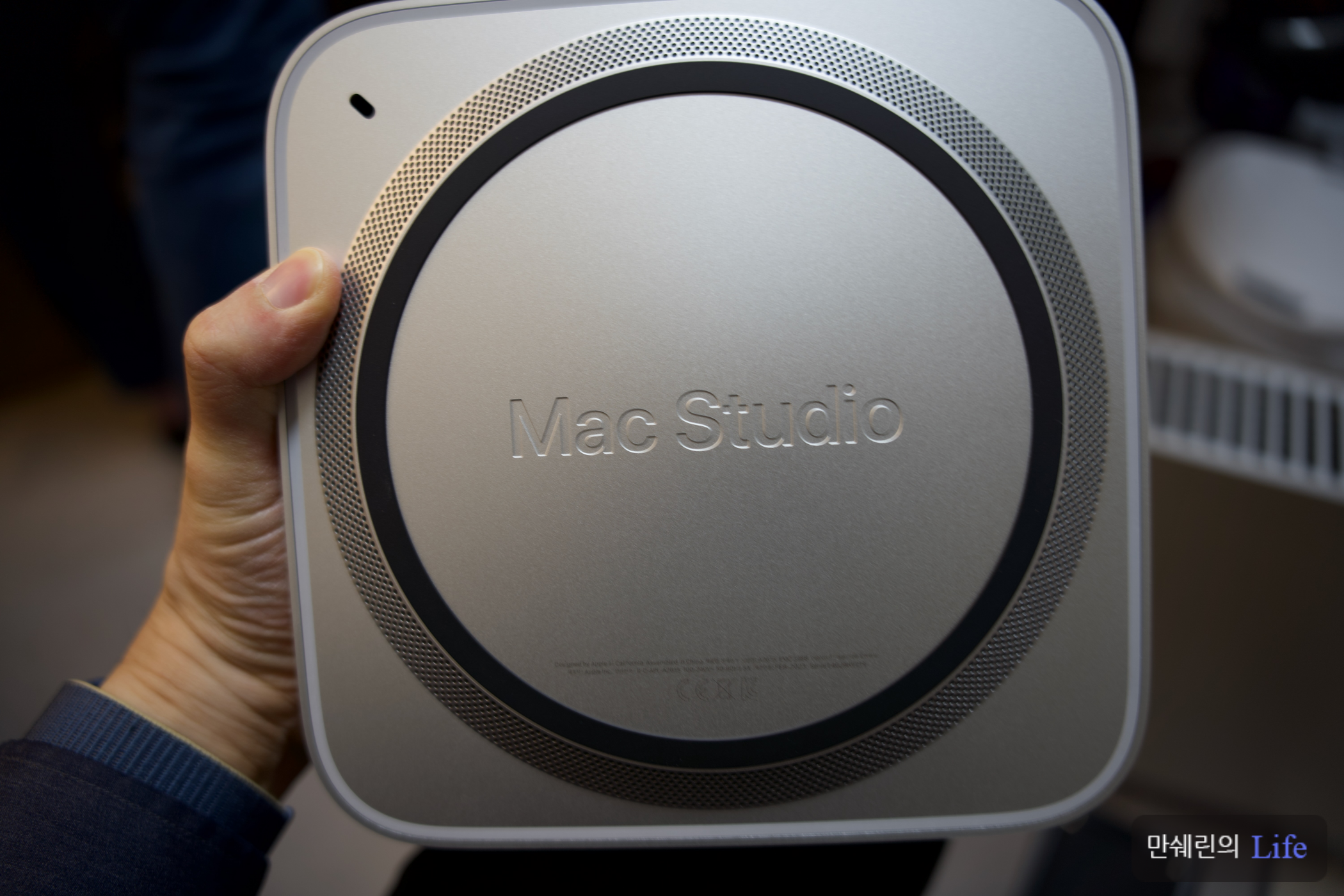 바닥에는 맥북프로와 비슷하게 "Mac Studio"라고 음각되어 있습니다.