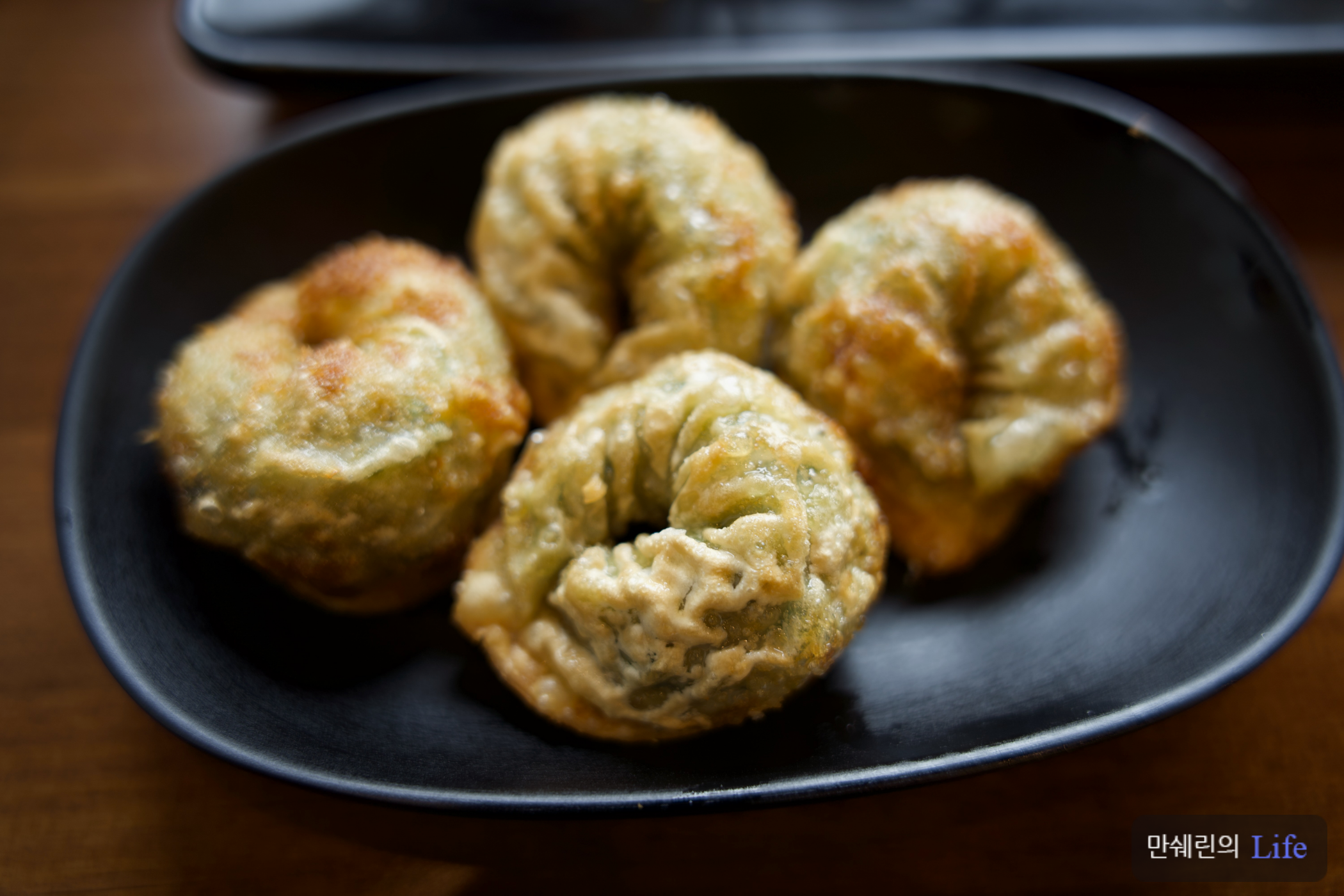 사이드로 주문한 군만두도 참 맛깔스럽게 나왔습니다.
