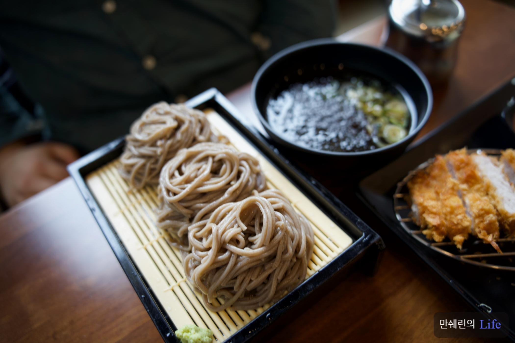 모밀에 돈가스는 우동정식과 동일하게 나왔습니다.