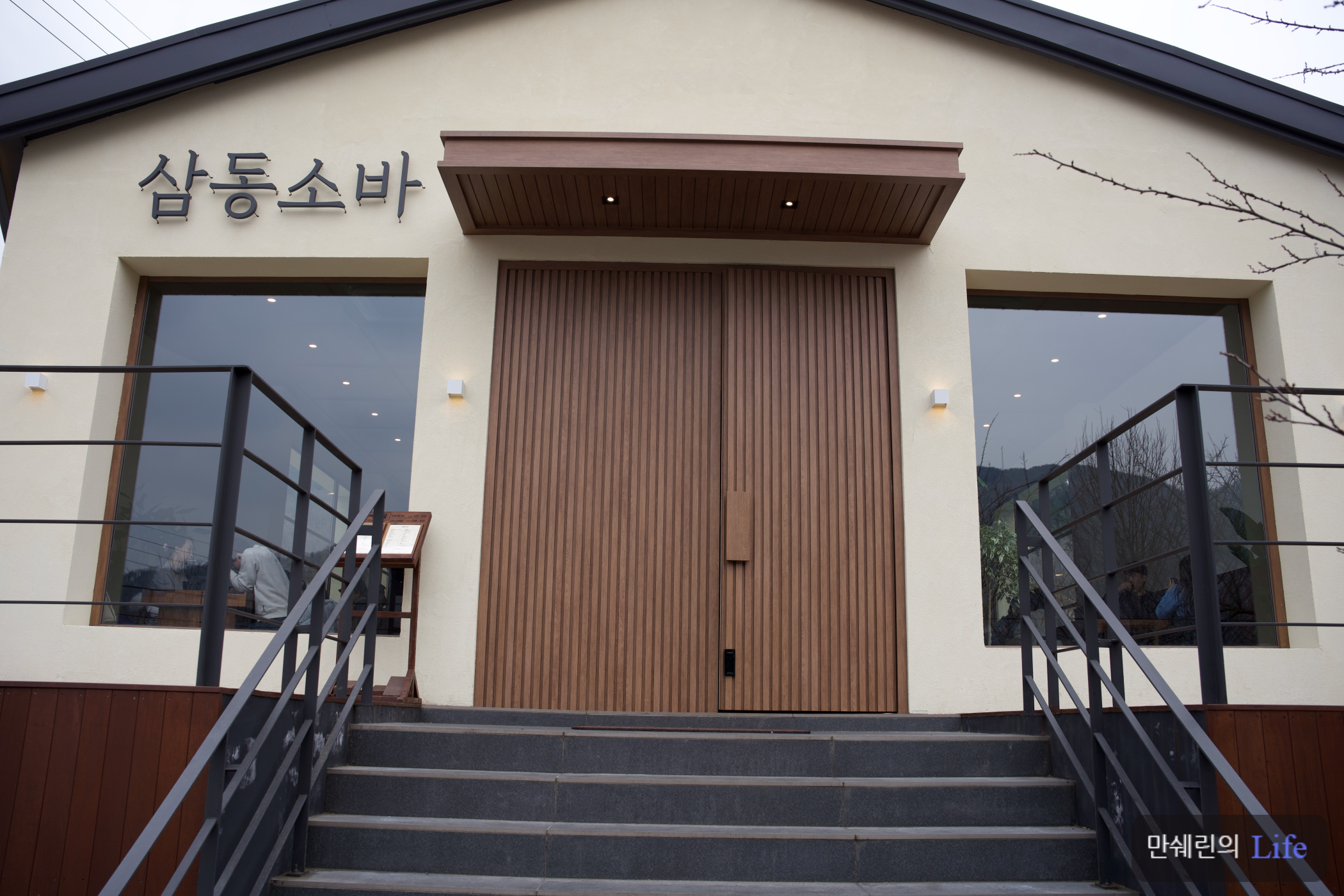 간판을 지나 계단을 올라가면 삼동소바 건물 전경이 보입니다.