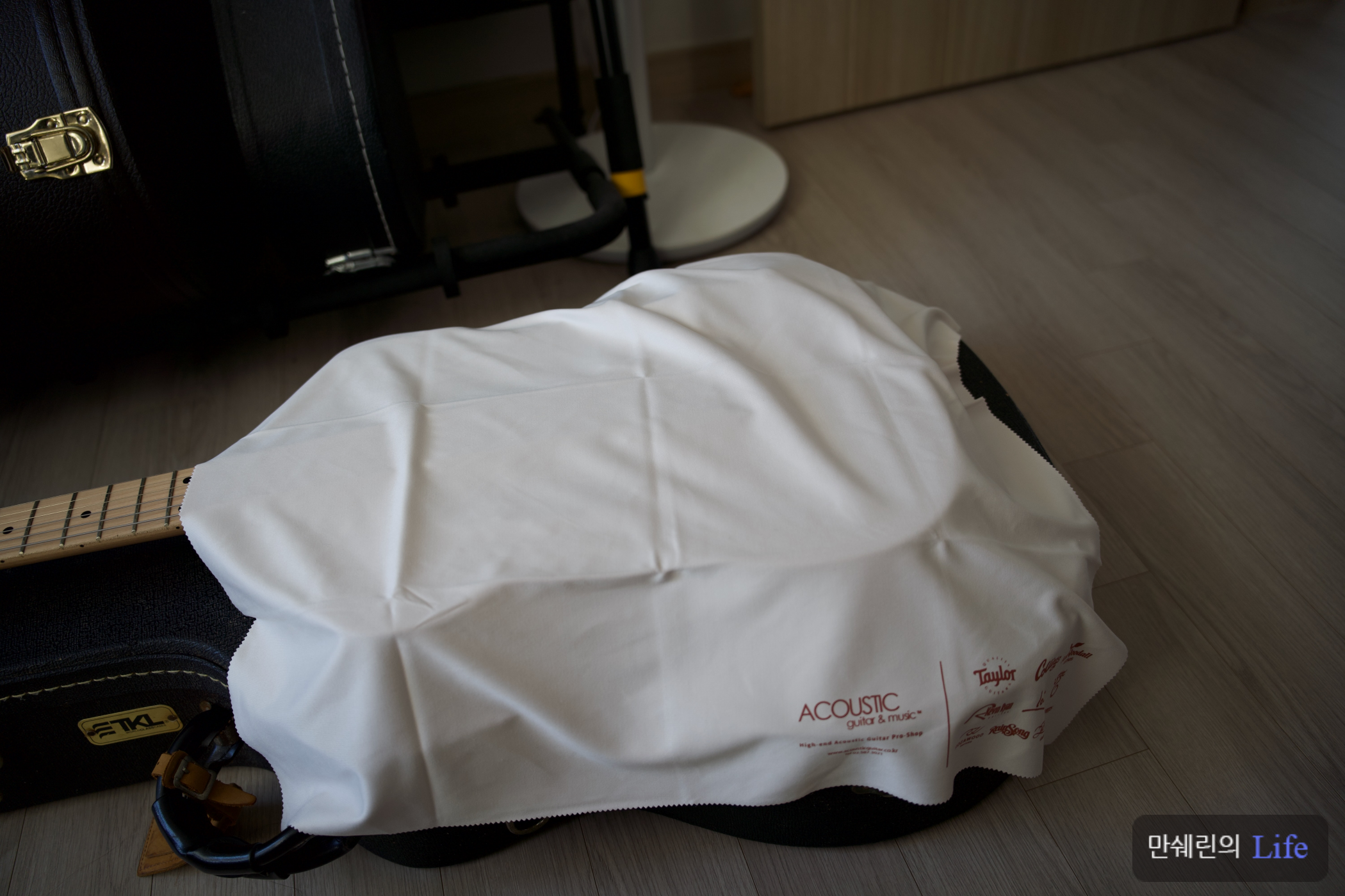 바로 Swingkid(강명성)님이 단골로 가시는 Acoustic GUITAR & MUSIC(A.K.A AGM)에서 판매하는 제품인 극세사 천을 선물로 주셨습니다.