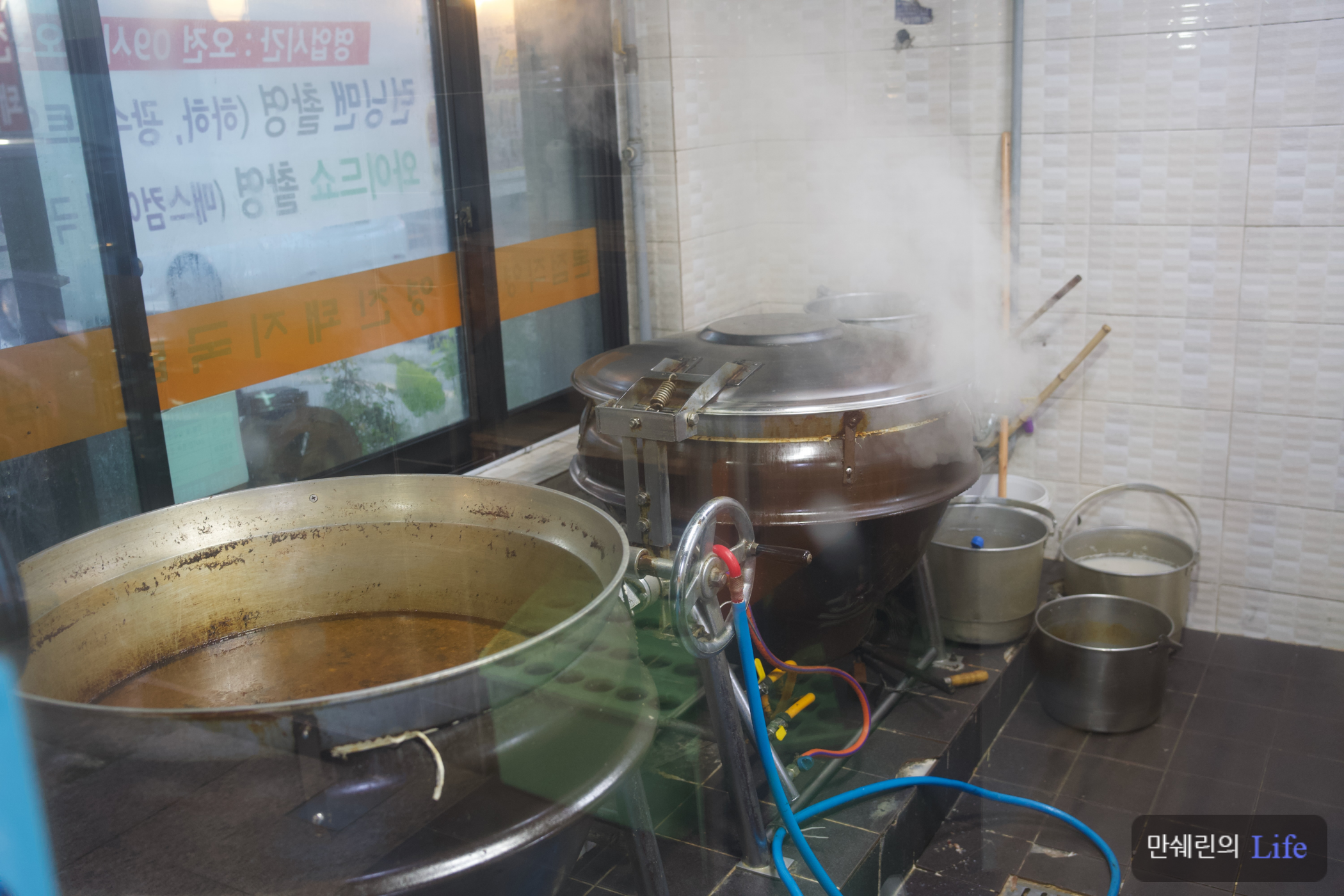 대형 솥에 팔팔 끓여지고 있는 모습을 볼 수 있습니다!