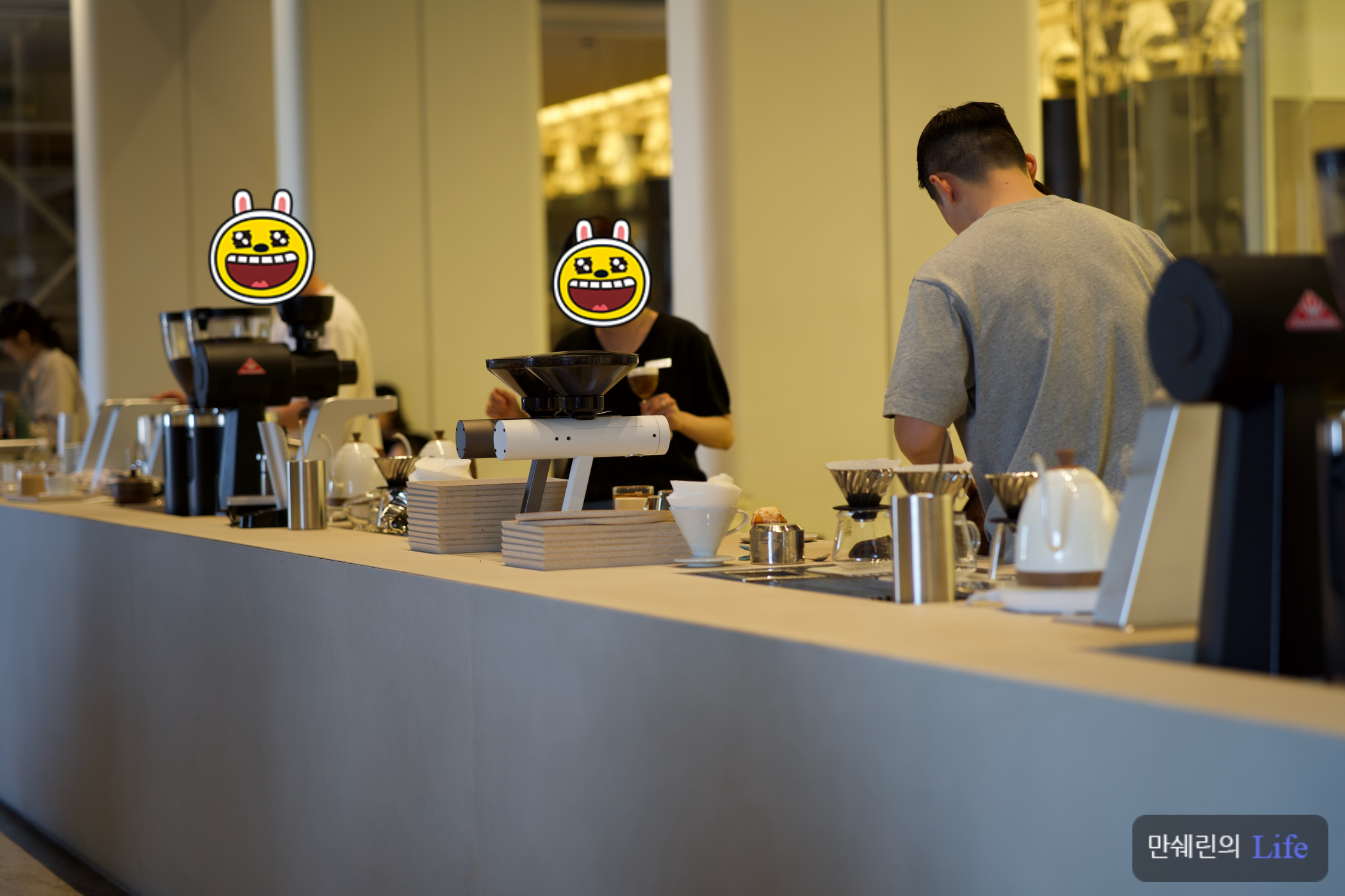 멋진 바리스타분들이 커피를 맛있게 내려주고 있으셔서 찍었는데, 너무 잘 나와서 초상권을 지켜드립니다. :)