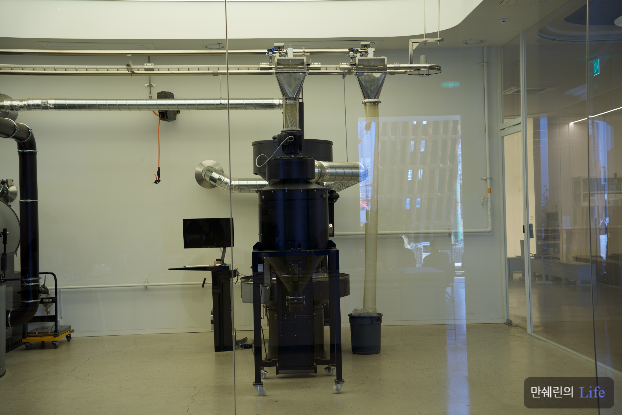 위에 연결된 파이프라인으로 원두들이 자동으로 이동한다고 유은호 님이 알려주셨습니다.