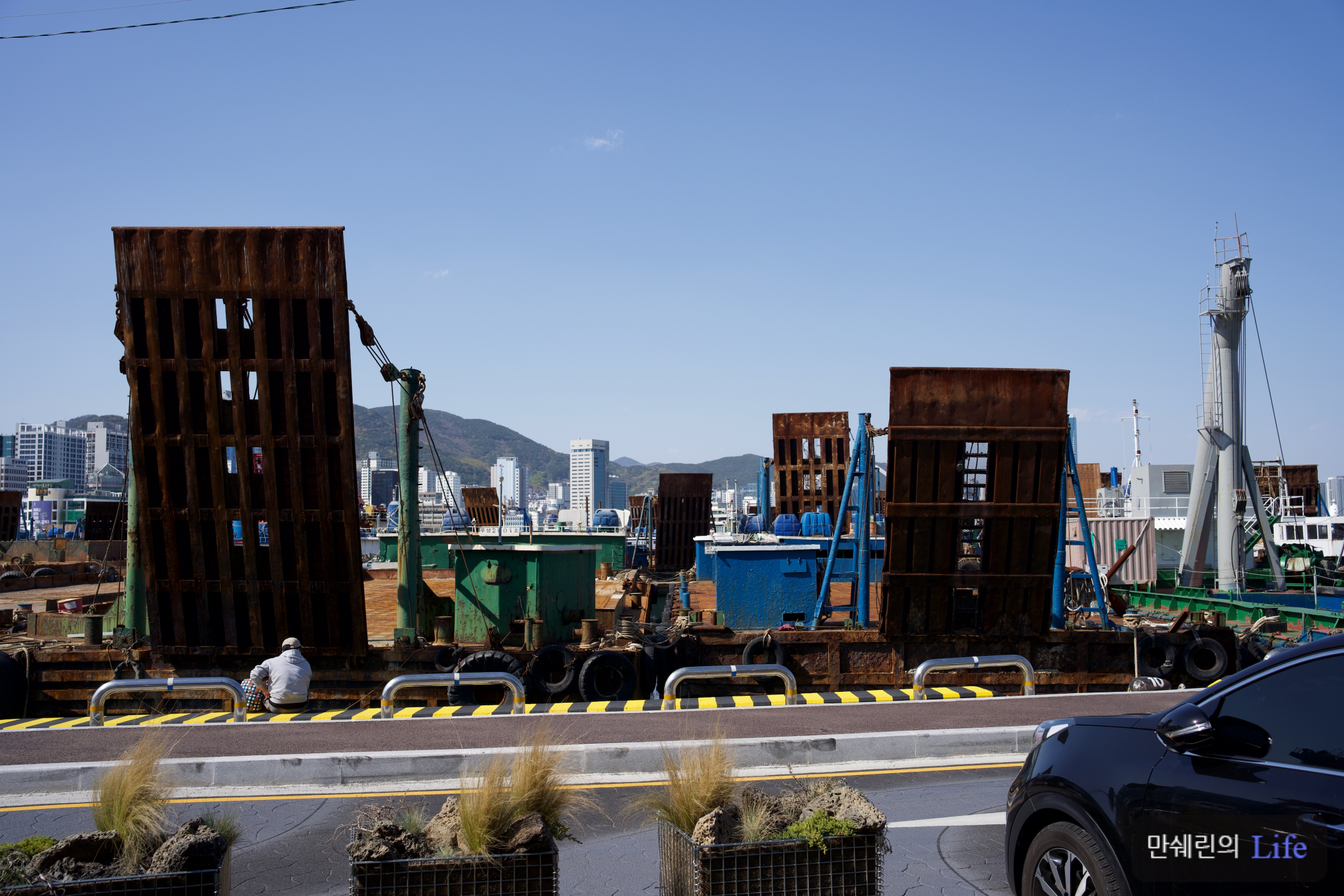 바로 앞이 바다고 배들이 정박해 있어서 부산의 느낌을 물씬 느낄 수 있는 뷰를 즐길 수 있습니다.