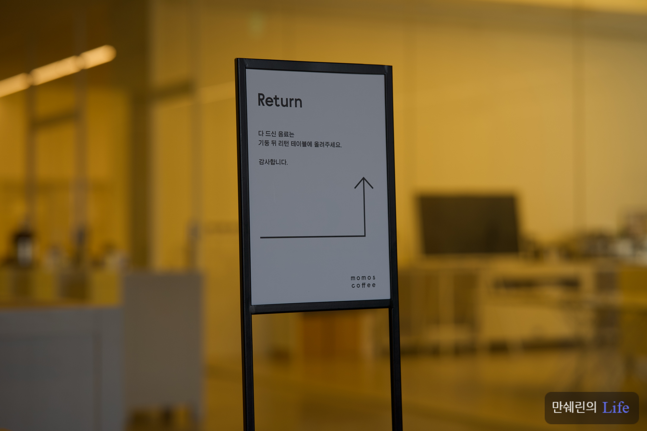 모모스 커피 내에서 음료를 드셨다면 컵이나 식기를 반납하는 곳이 기둥 뒤쪽 테이블에 올려두시면 됩니다.