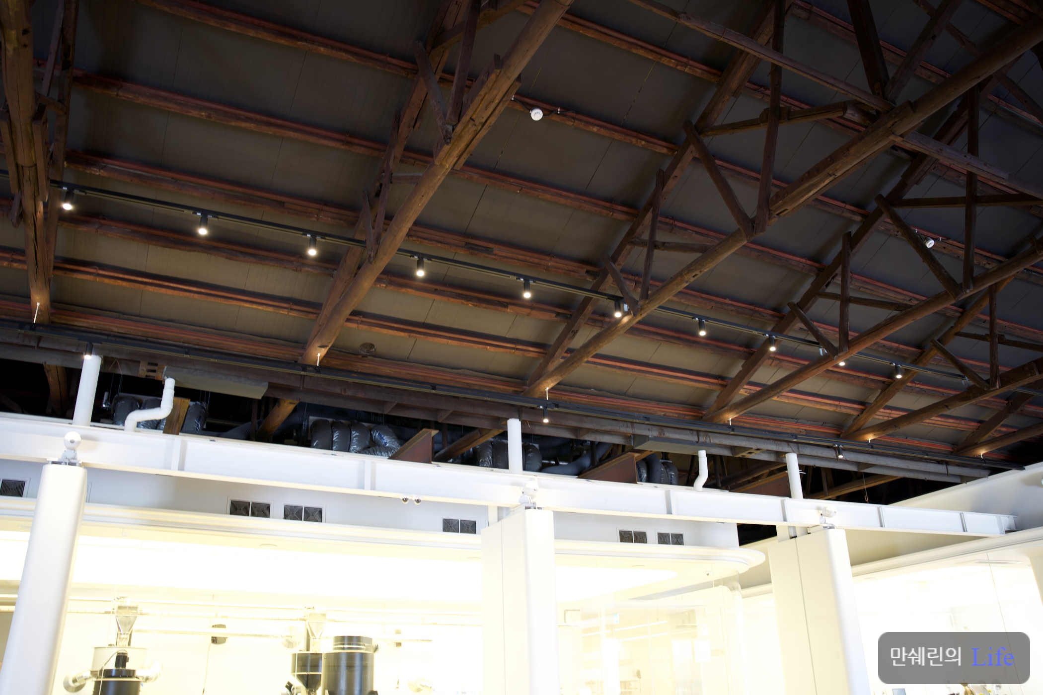 천장 인테리어는 약간 공장 느낌의 마감이 되어있습니다.