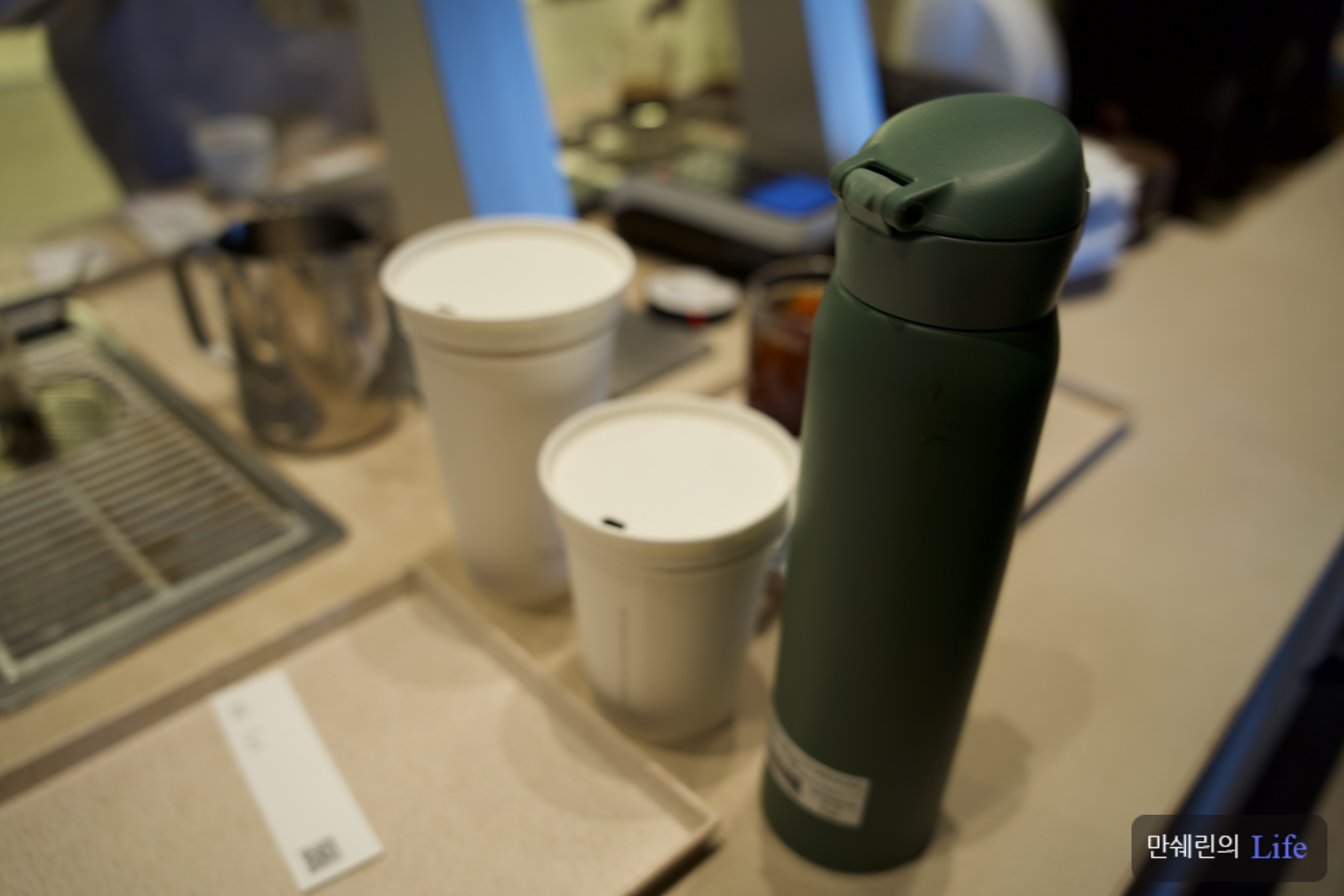 저는 텀블러에, 유은호 님 L SONG님은 일회용 컵에 커피를 받으셨습니다.