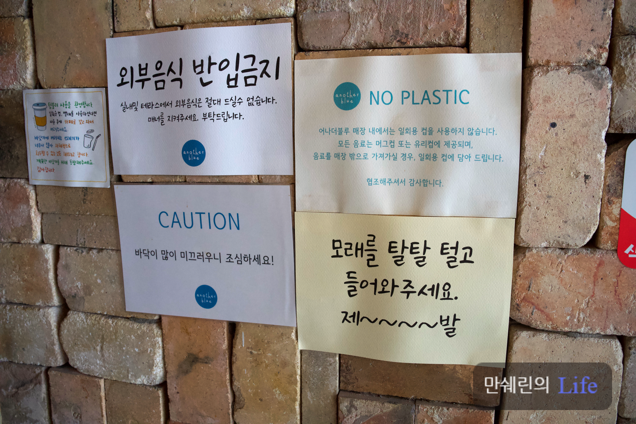 바닷가 근처다 보니 모래가 신발에 많이 붙어서 매장으로 유입이 되나 봅니다.