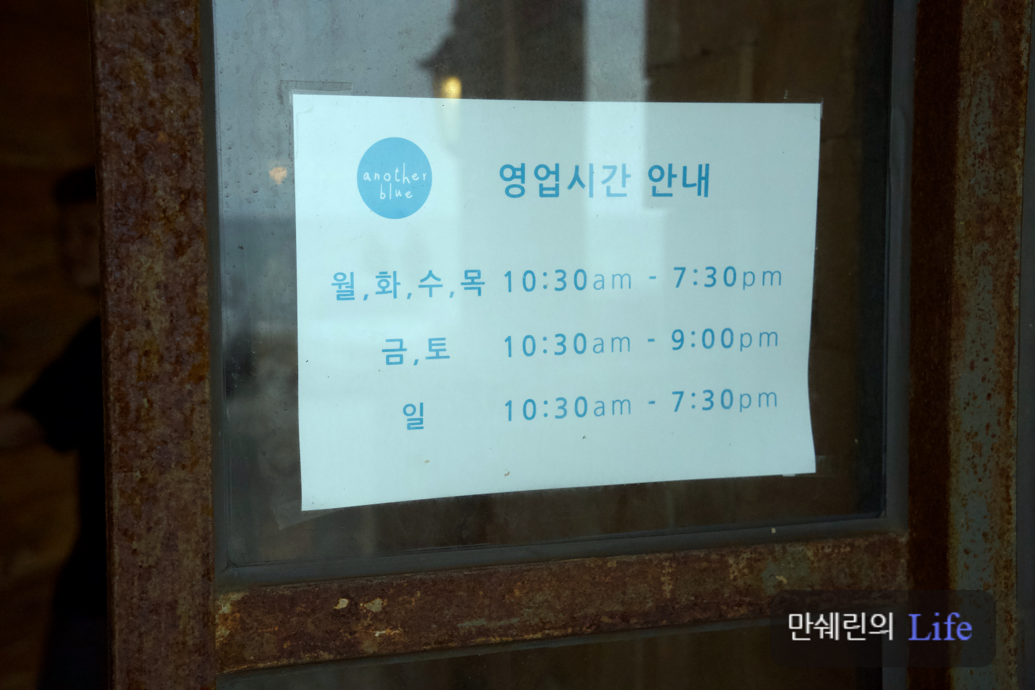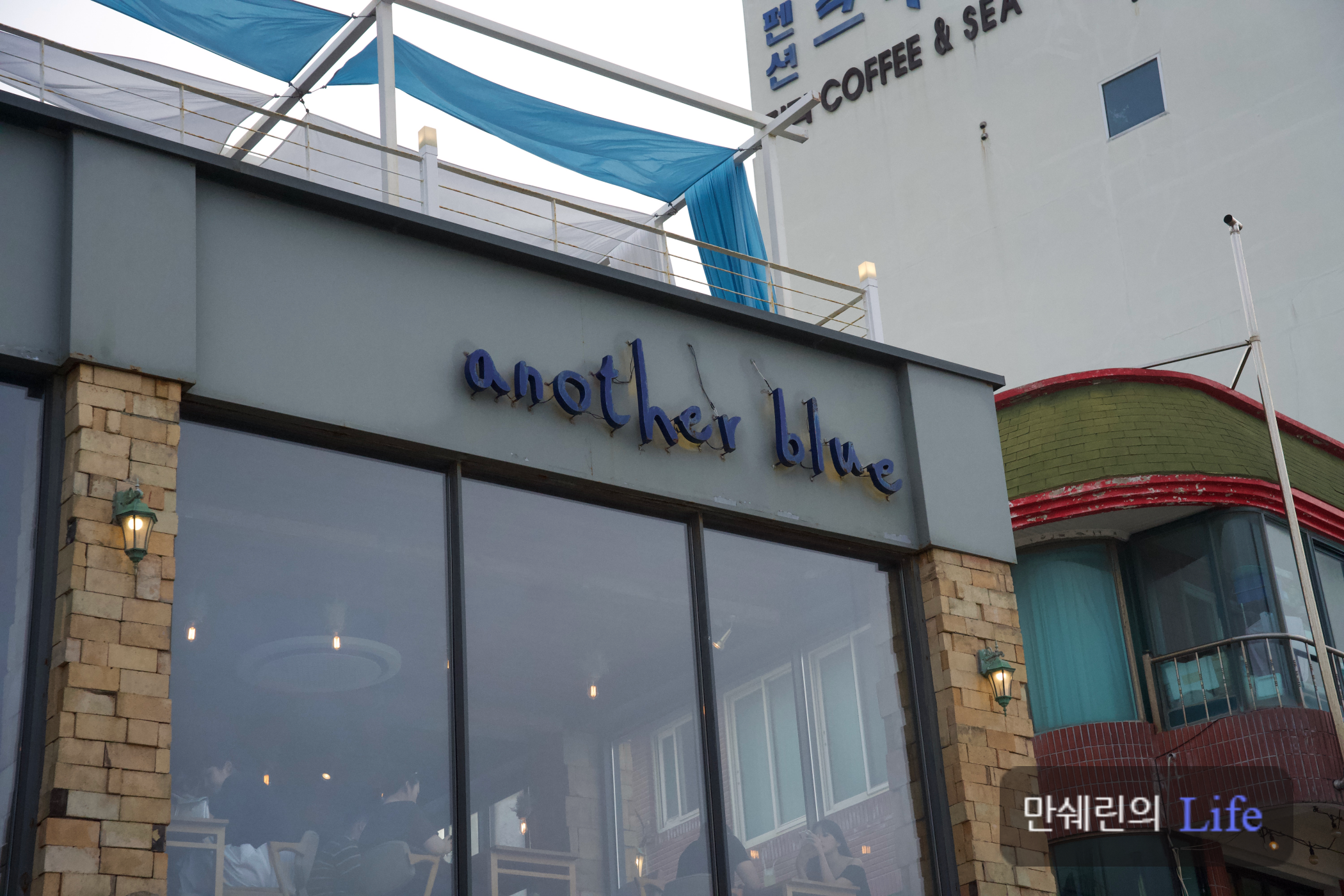 어나더블루의 간판은 이렇게 생겼습니다.