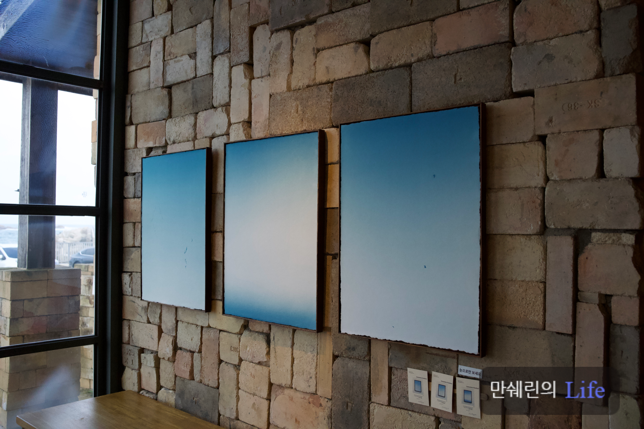 주문한 음료가 나오는 동안 인테리어를 구경했는데 바다와 하늘을 그려놓은 듯한 그림 세 점이 걸려있어 한번 사진에 담아보았습니다!