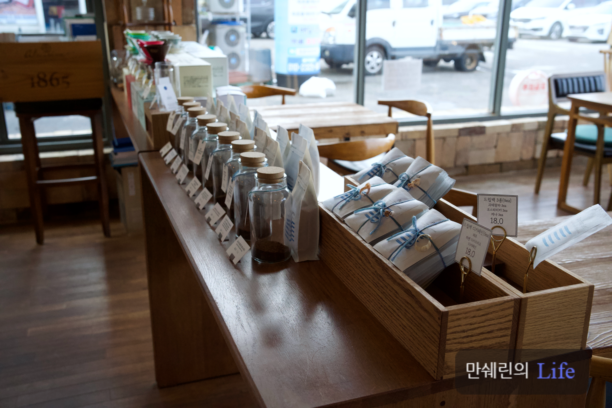 매장내부엔 원두와 드리퍼 등을 판매하고 있었습니다!