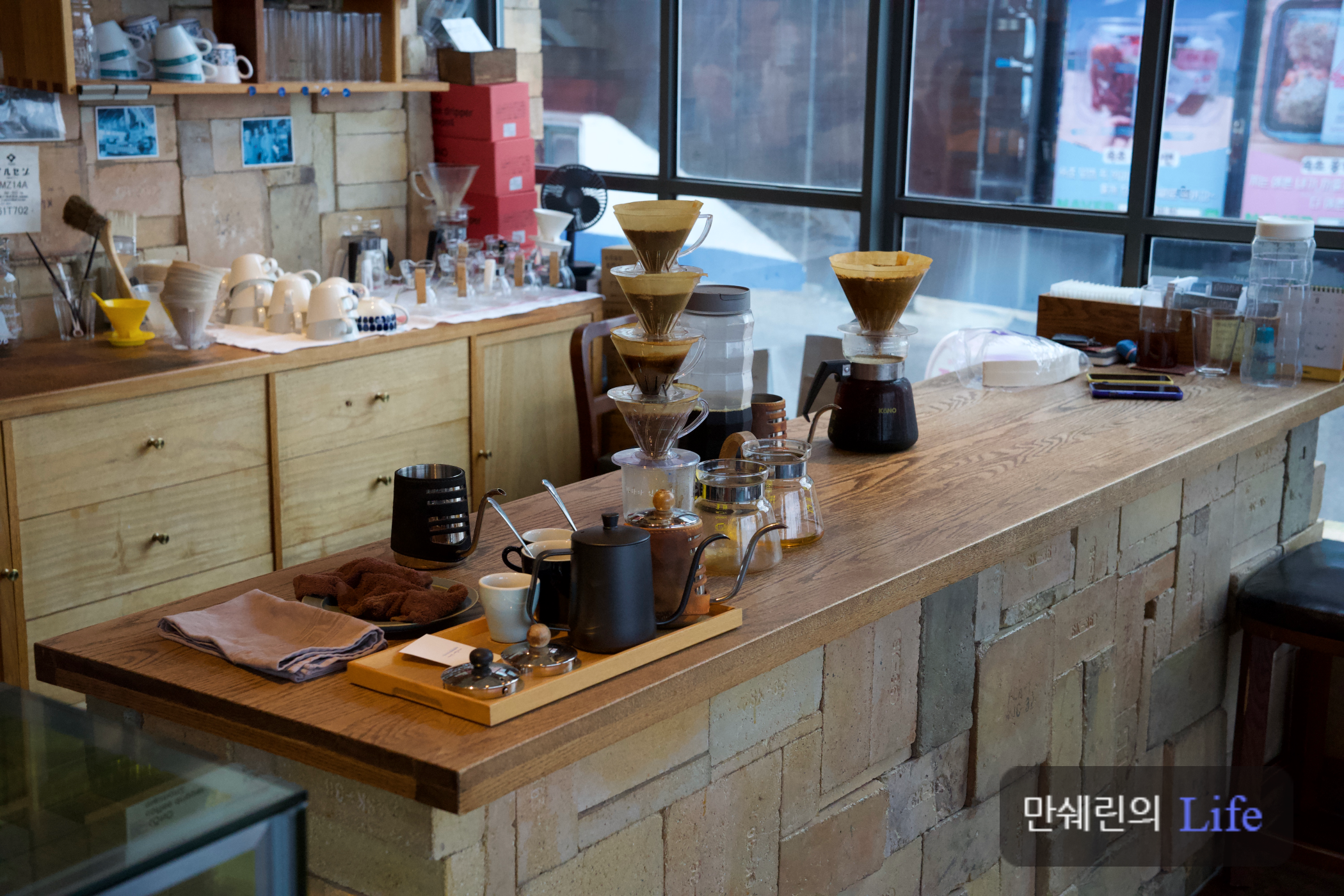 바로 옆에는 핸드 드립을 할 수 있는 드리퍼가 많이 준비되어 있더군요!