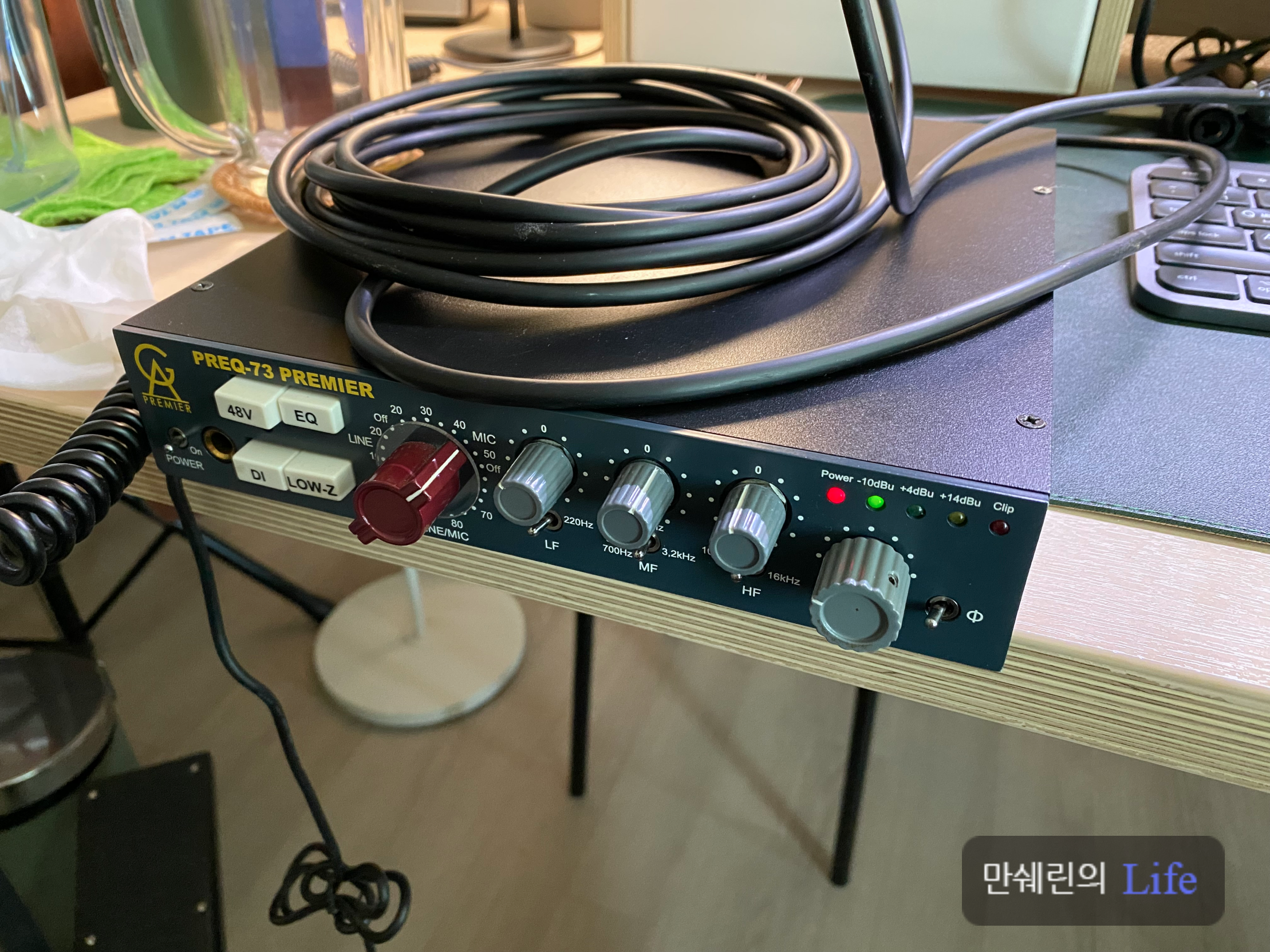 물론 프리앰프, 마이크, 오디오인터페이스 모두 좋은 제품을 쓰면 좋겠으나 프리앰프가 하나 있고 없고의 차이는 녹음의 질적인 차이가 너무 큽니다.
