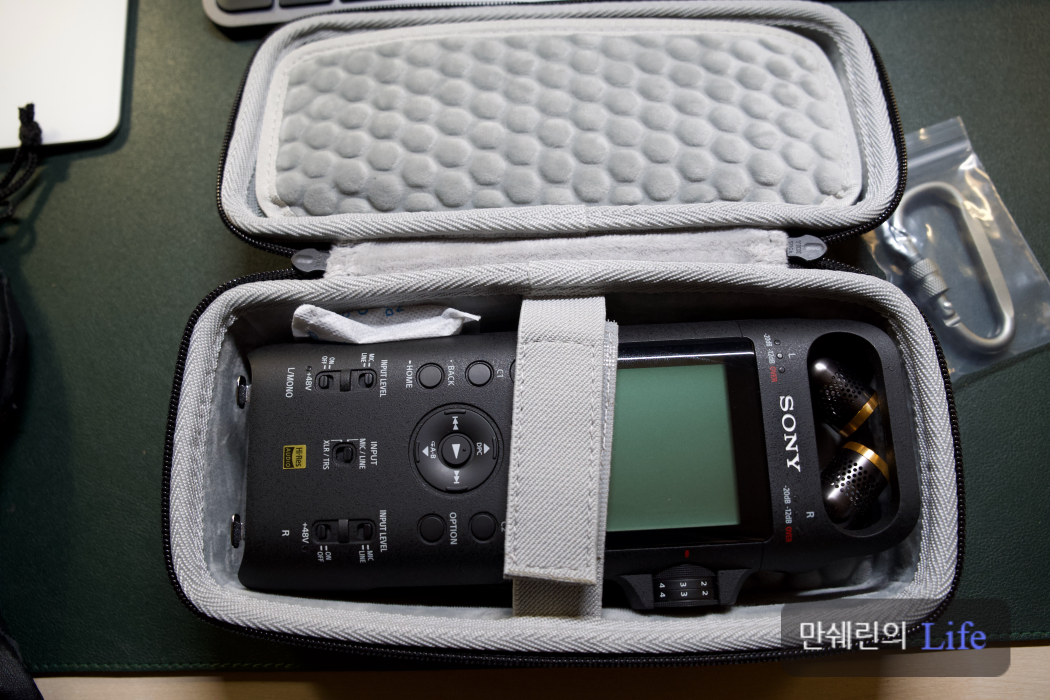 PCM-D10 자체의 무게도 어느 정도 되는데 케이스에 넣고 들면 꽤 묵직해서 약간 부담스럽네요.