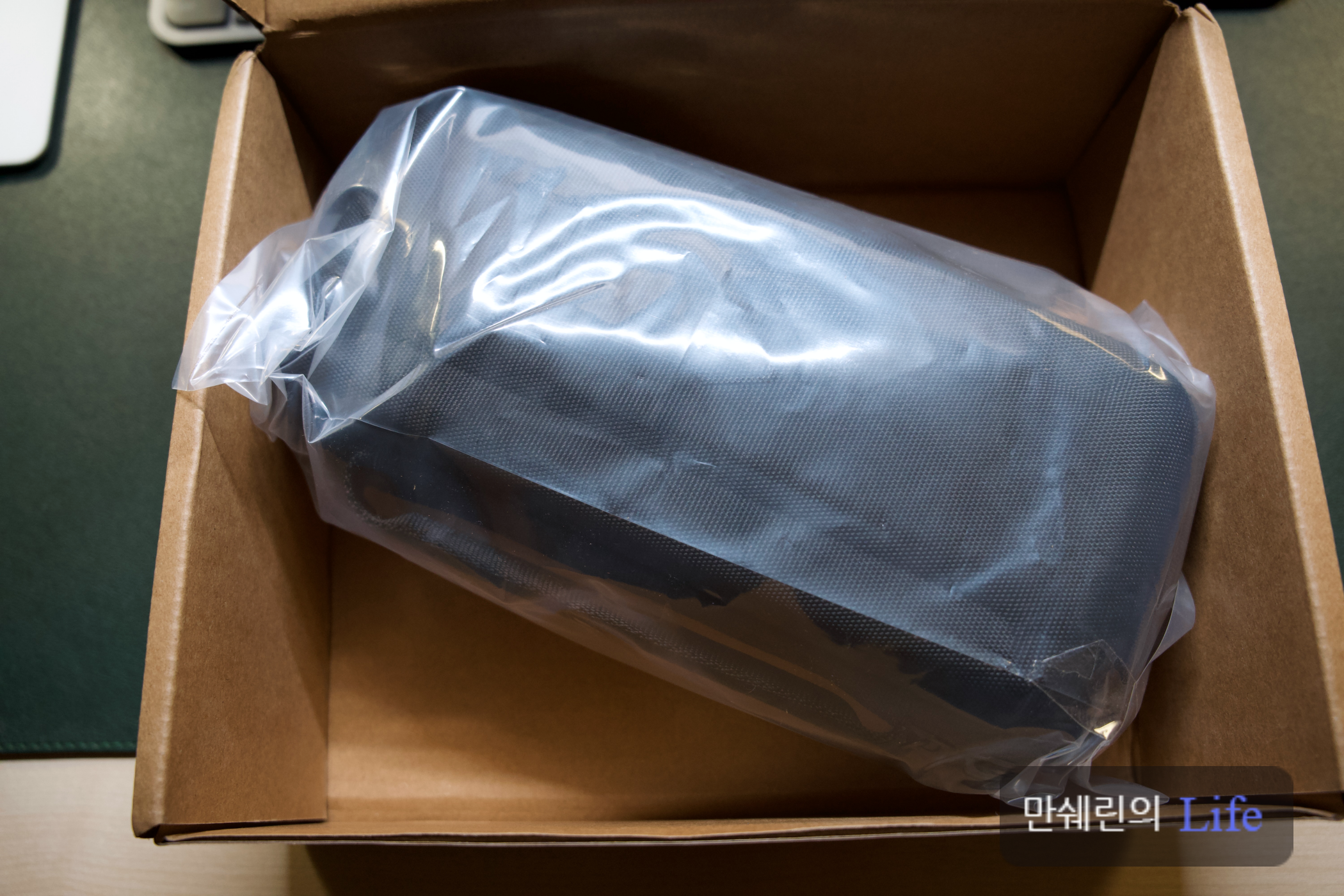박스 안에 비닐로 포장된 케이스가 있습니다.