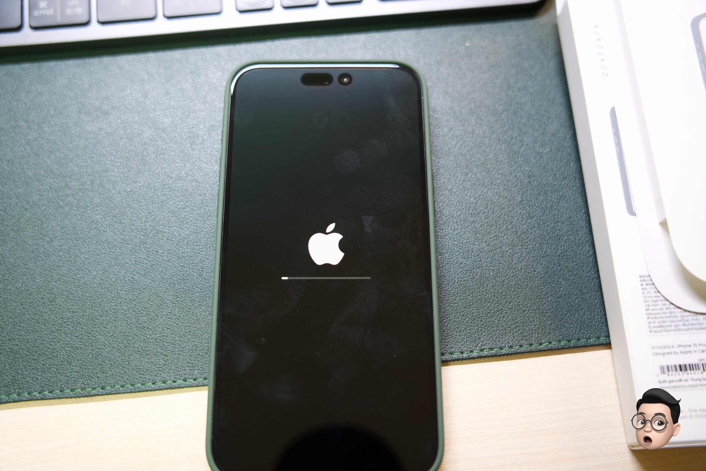 이제 막 전원을 켠 아이폰 15 프로 맥스에 장착을 해주었습니다.