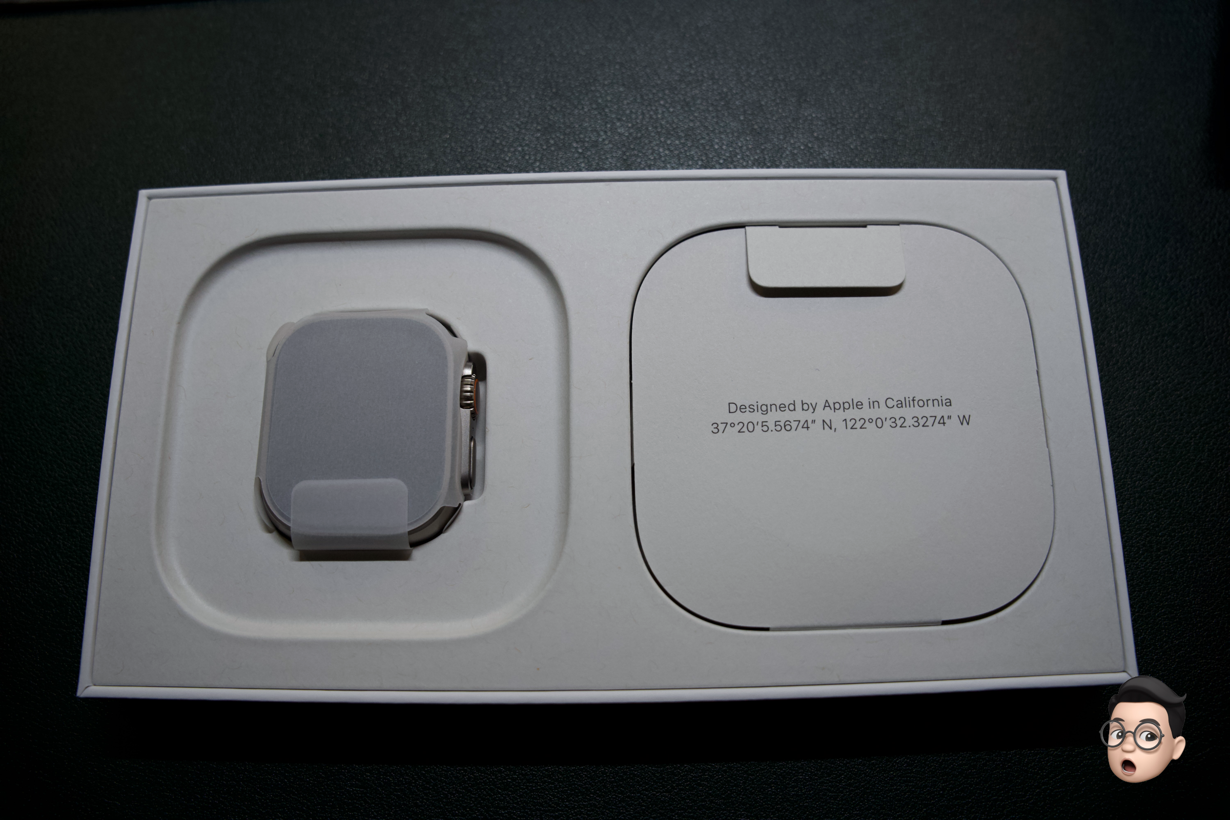 뚜껑을 열어보면 왼쪽에 애플워치 울트라 2 본체, 오른쪽에 충전기가 포장되어 있습니다.