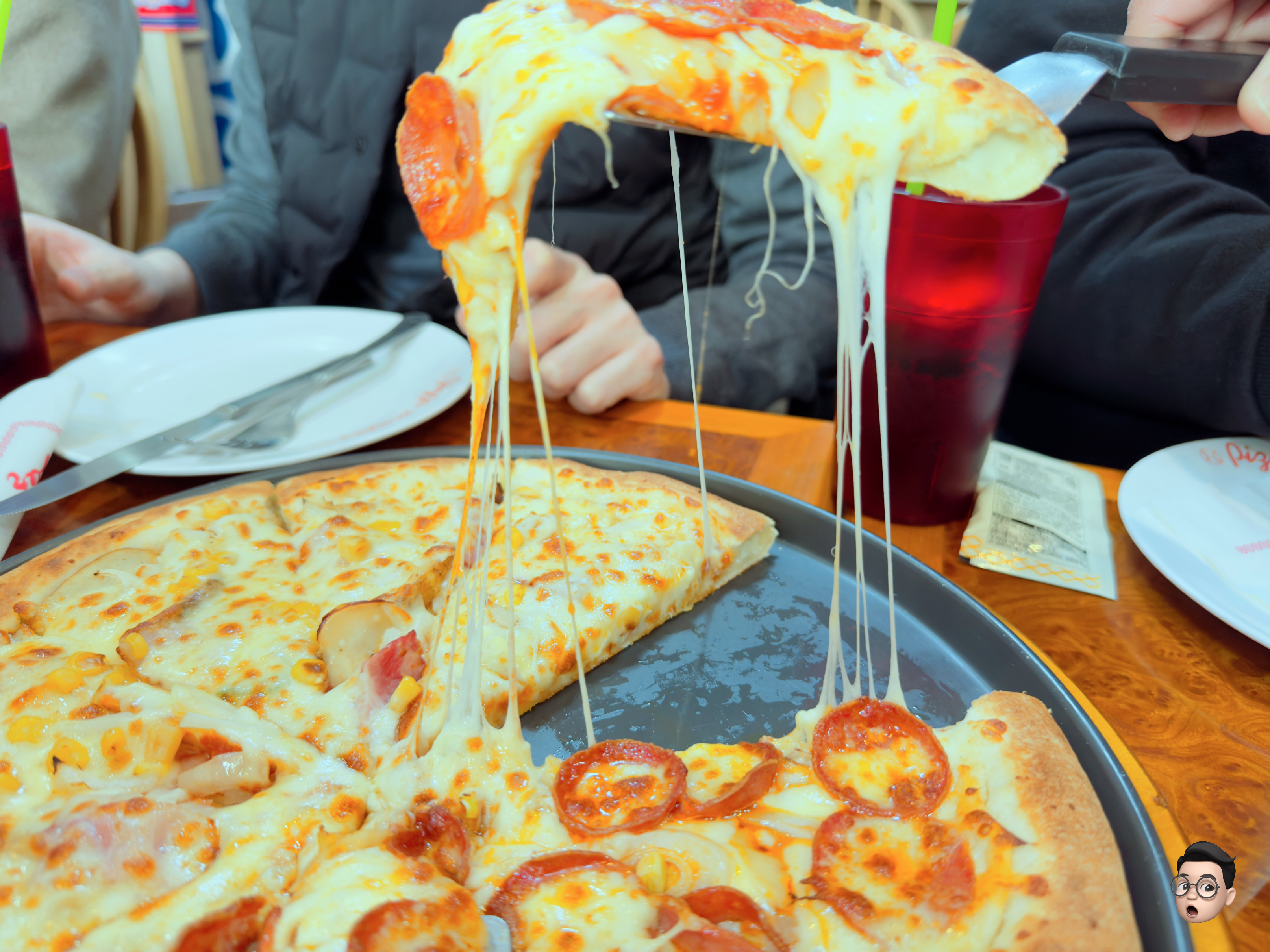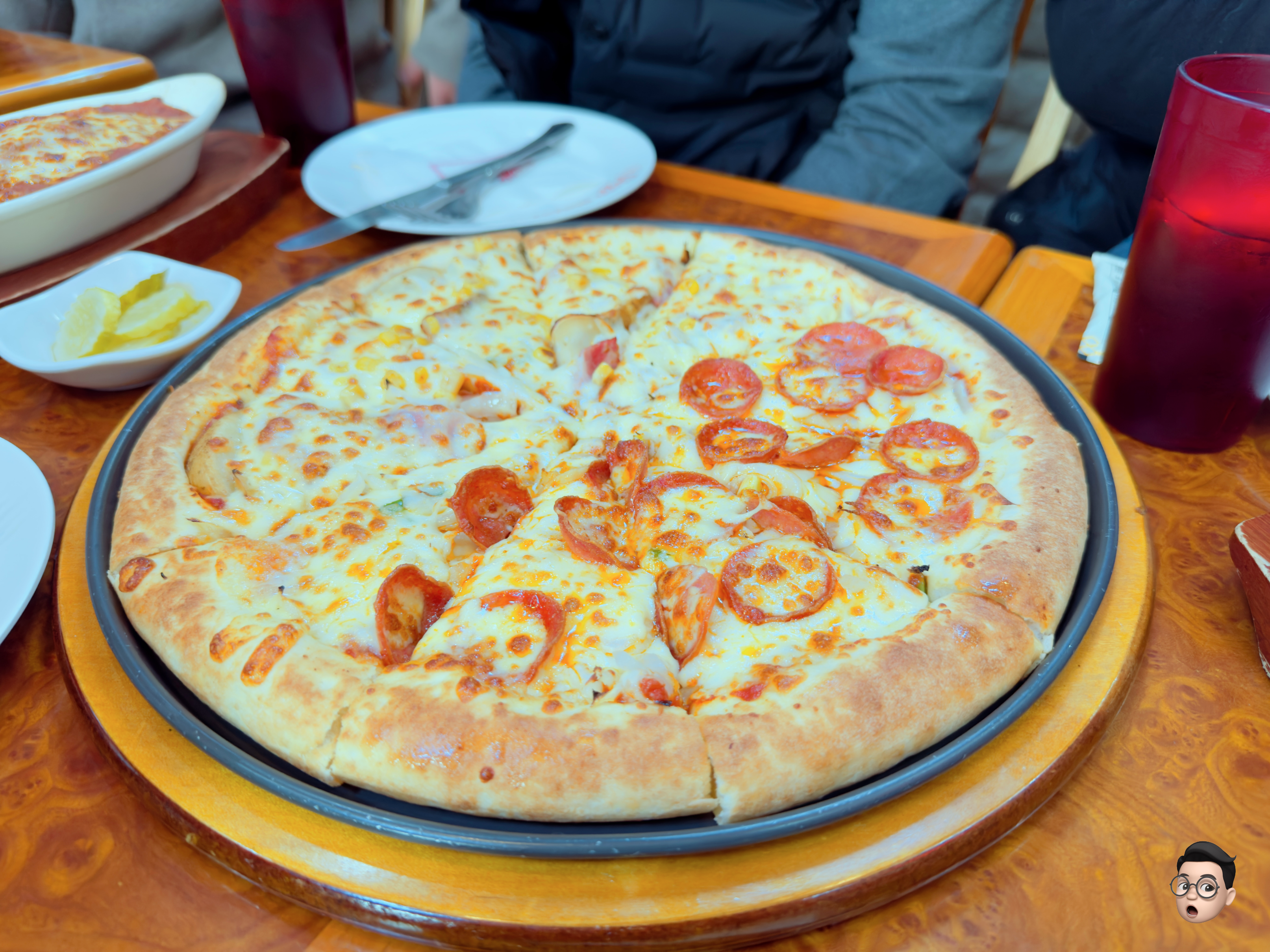 요즘 프랜차이즈 피자와는 다른 추억의 옛날 느낌 그대로의 피자로 먹고 나서 부담이 없는 게 가장 큰 장점이었습니다.