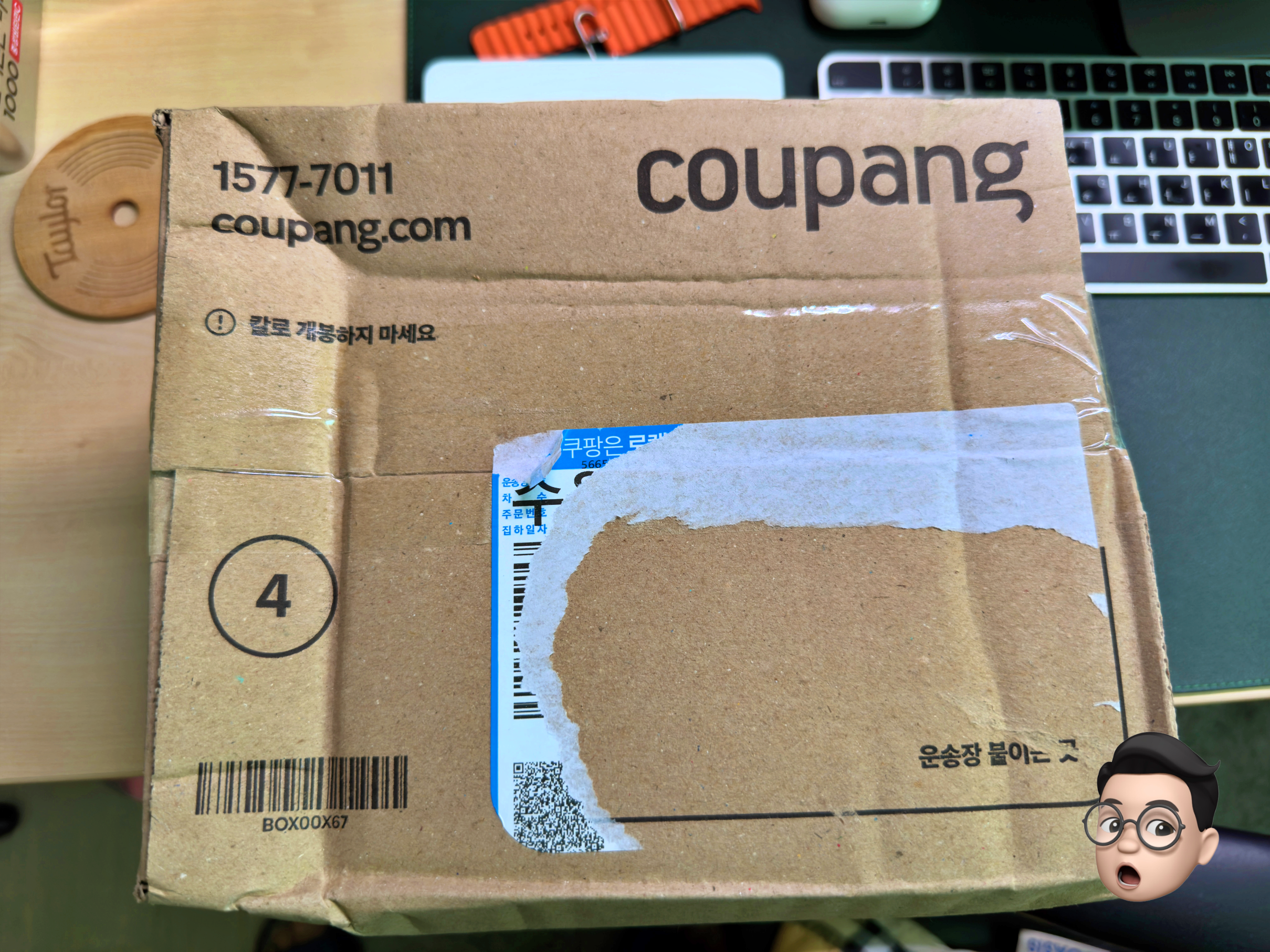 분명 유리컵인데... 취급주의나 깨짐주의 스티커가 붙어있지 않았고...