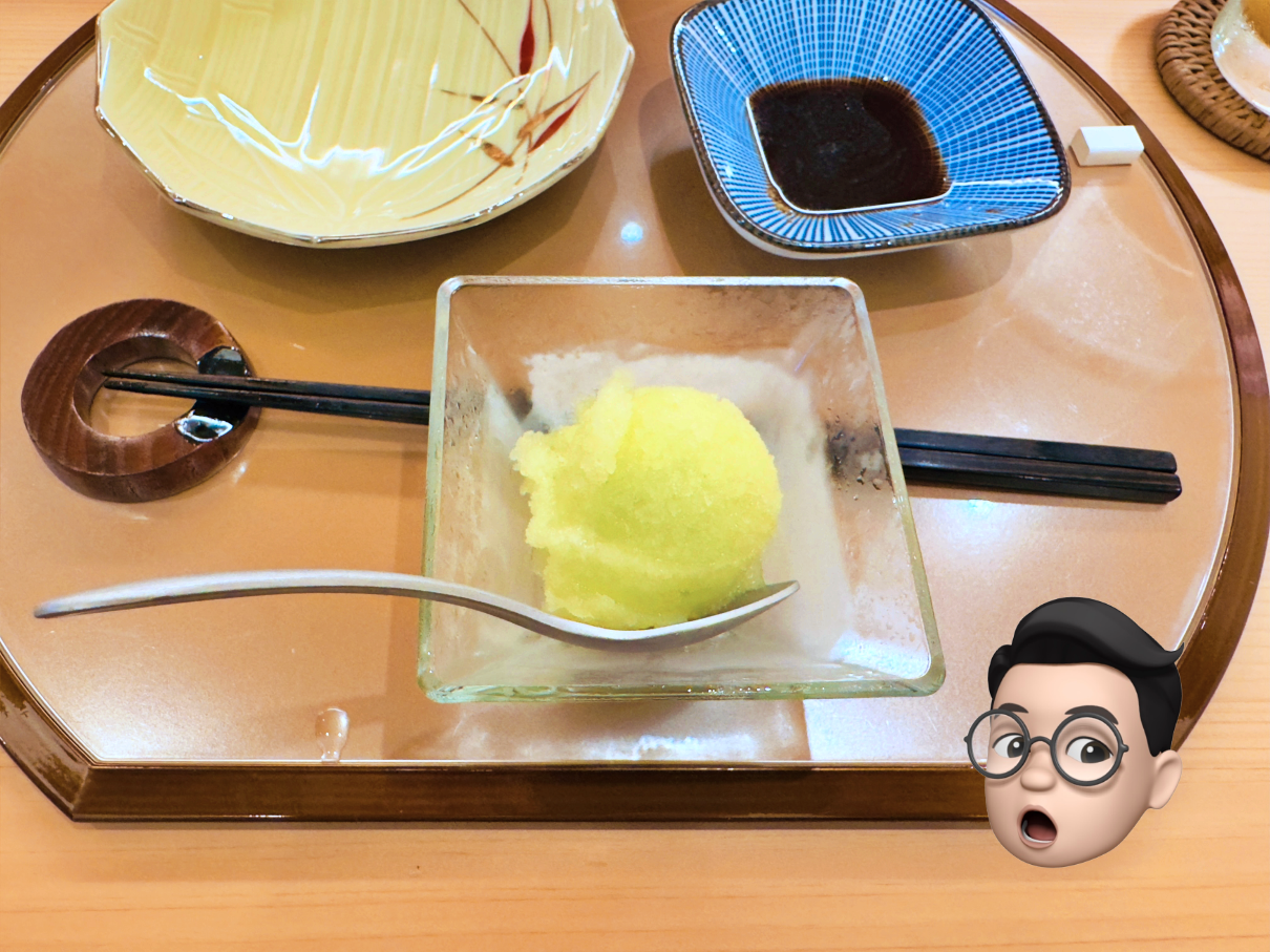 유자에 시소를 넣은 셔벗으로 마무리를 해 주셨습니다.